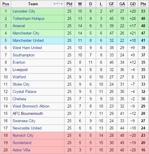 Rời Dean Court với chiến thắng quan trọng, thầy trò Arsene Wenger kịp trở lại đường đua vô địch khi trở lại top 3, có cùng 48 điểm như Tottenham và kém đội đầu bảng Leicester City 5 điểm.