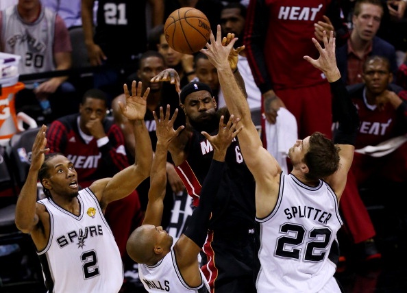 | Bên cạnh ngôi sao mang áo số 2, bộ đôi lão tướng Tim Duncan (1) và Manu Ginobili (20) cũng thi đấu rất ấn tượng giúp Spurs chiếm ưu thế trong hiệp 2 và 3. Trước khi bước vào hiệp đấu cuối cùng, đội chủ nhà đã bỏ xa Heat với khoảng cách lên tới 19 điểm (77-58). |