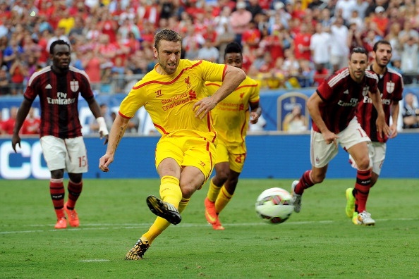 | Nhập cuộc bằng lối chơi tấn công tốc độ, The Kop khiến hàng thủ Milan căng sức chống đỡ. Phút 17, sau tình huống để mất bóng từ giữa sân của Michael Essien, Joe Allen có pha thoát xuống rất nhanh trước khi dứt điểm tung lưới đại diện Serie A. |