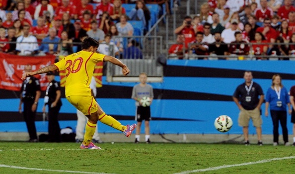 | Đến phút 28, đương kim Á quân Premier League có cơ hội nhân đôi cách biệt sau khi Sterling bị đốn ngã trong vòng cấm. Tiếc là trên chấm phạt đền, tân binh Rickie Lambert đã không thể đánh bại được thủ thành Abbiati. Chân sút 32 tuổi ít nhiều gây bất ngờ với pha bỏ lỡ cơ hội trên bởi anh đều ghi bàn từ 34 quả đá penalty cho đội bóng cũ Southampton. |