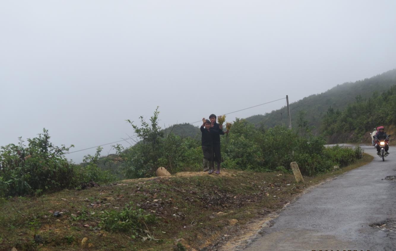 | Những em bé vẫy tay chào lữ khách ở Lũng Cú. |