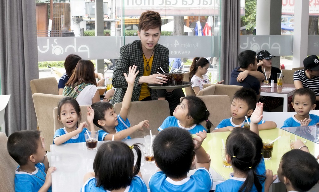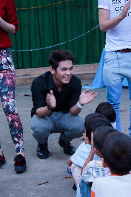 Sơn Ngọc Minh nhiệt tình chơi đùa với các em nhỏ.