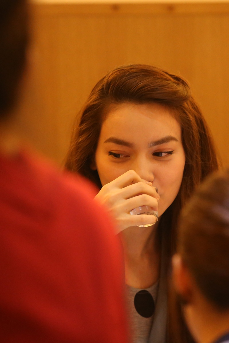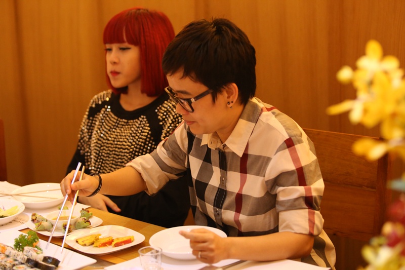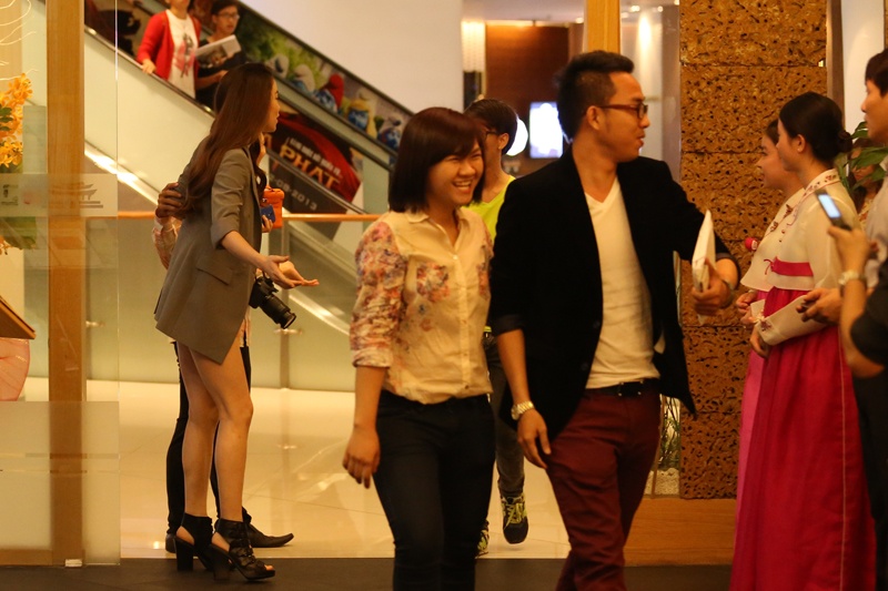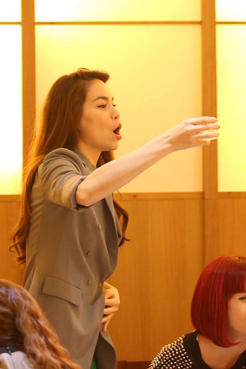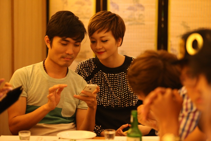 | Vĩnh Thụy cũng góp mặt tại buổi họp báo nhưng không đi nhậu cùng Hồ Ngọc Hà và bạn bè, cộng sự tại một nhà hàng Hàn Quốc sau đó. |