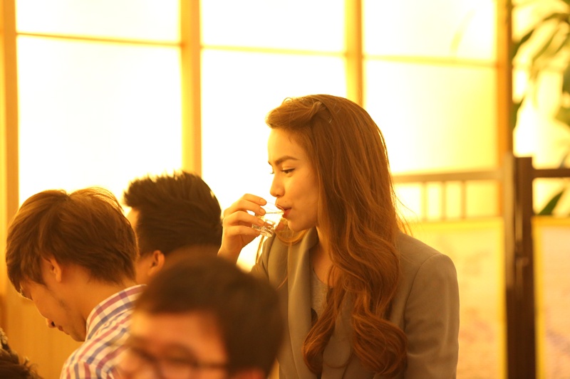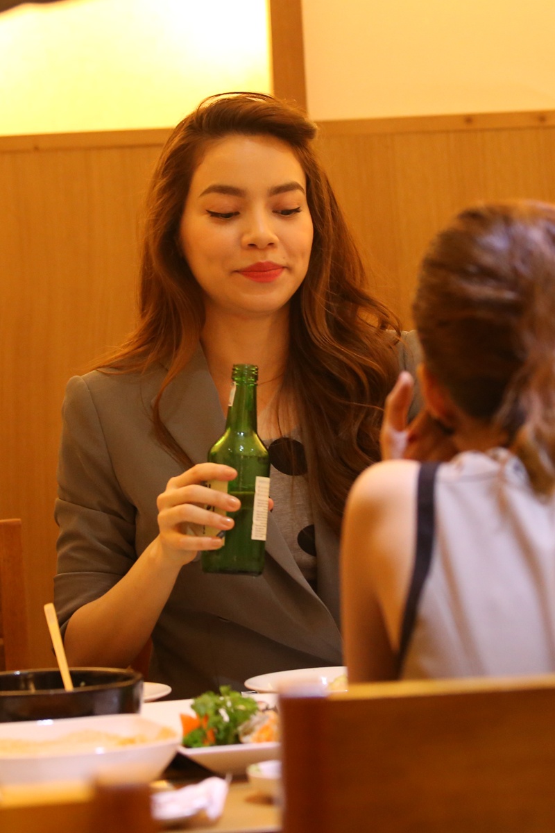 | Hà Hồ và mọi người uống sochu trước khi thưởng thức các món Hàn. |