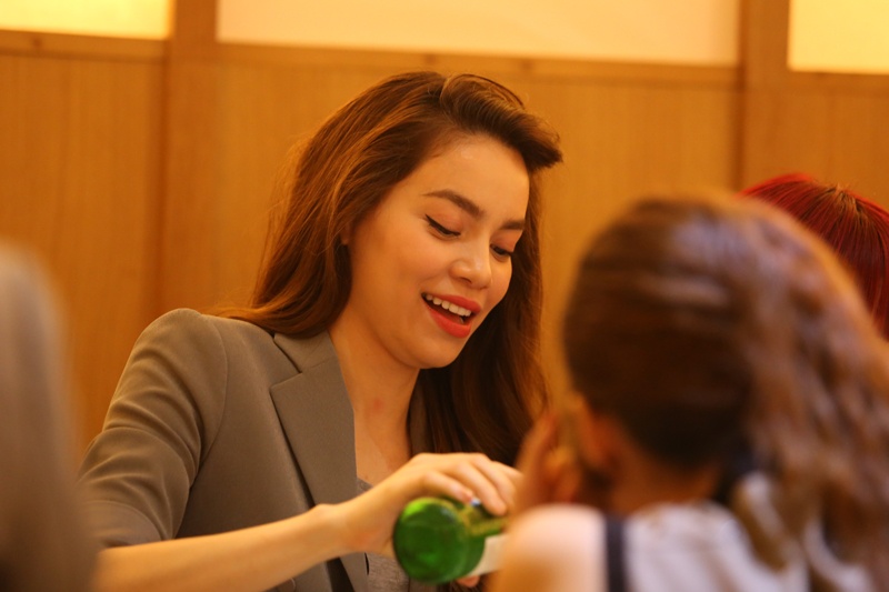 | Hà Hồ chủ động mời mọi người nâng ly chúc mừng cô. |
