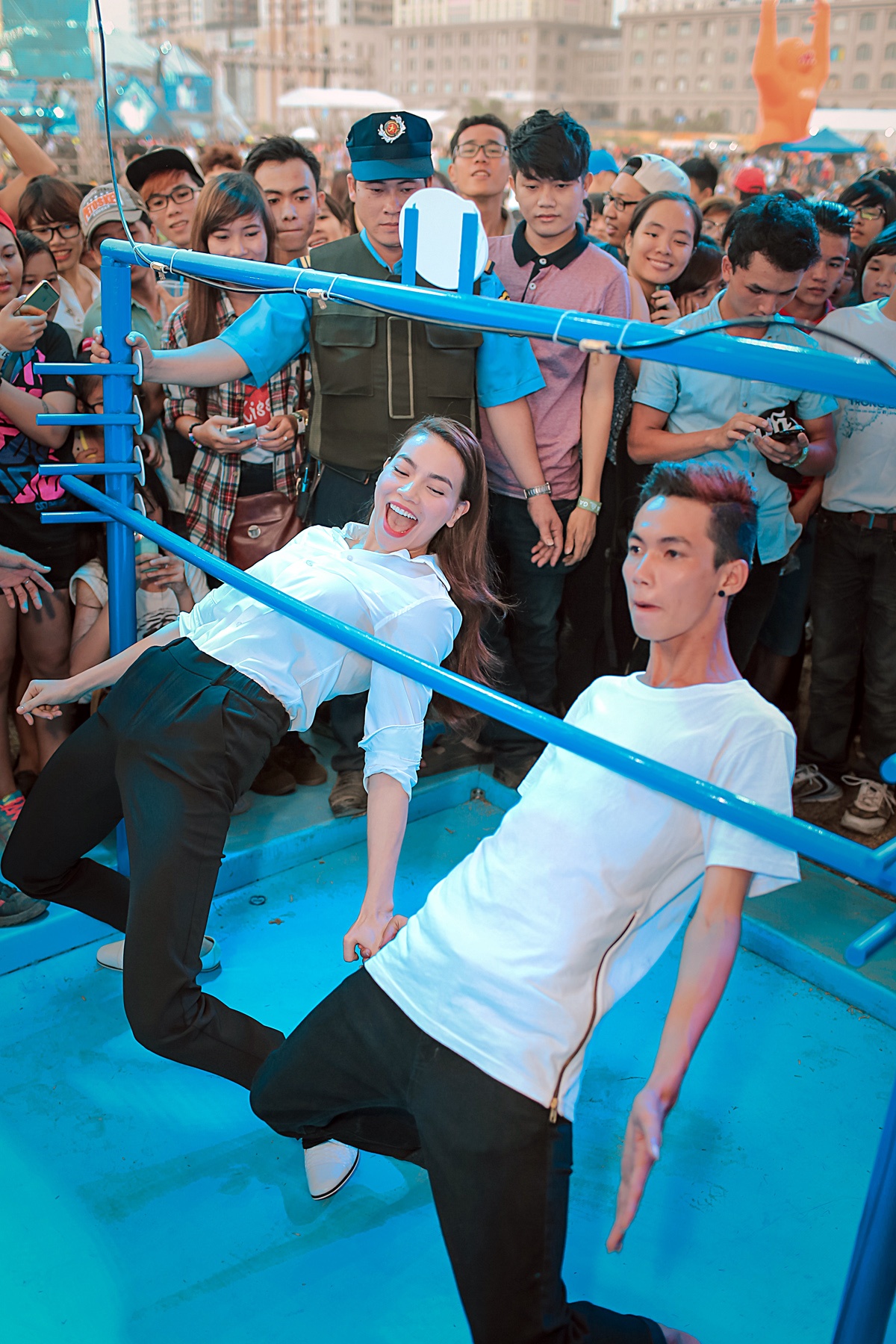 | Là người tập luyện yoga lâu năm, nên Hà Hồ sở hữu thân hình dẻo dai cùng khả năng uốn dẻo không thua kém bất kỳ ai. Chính vì thế, cô không ngại thi đấu với fan các trò vận động, đặc biệt là phần thi uốn mình đi qua các chướng ngại vật. |