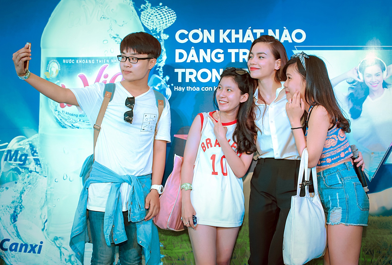 | Các fan thích thú khi được giao lưu và thoải mái chụp ảnh cùng Nữ hoàng giải trí Vbiz. |