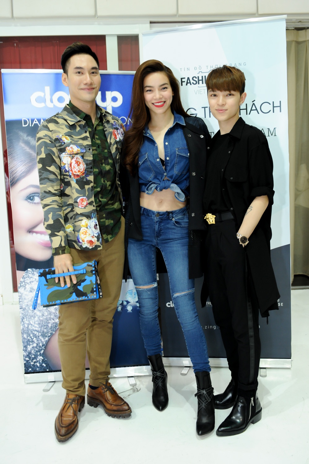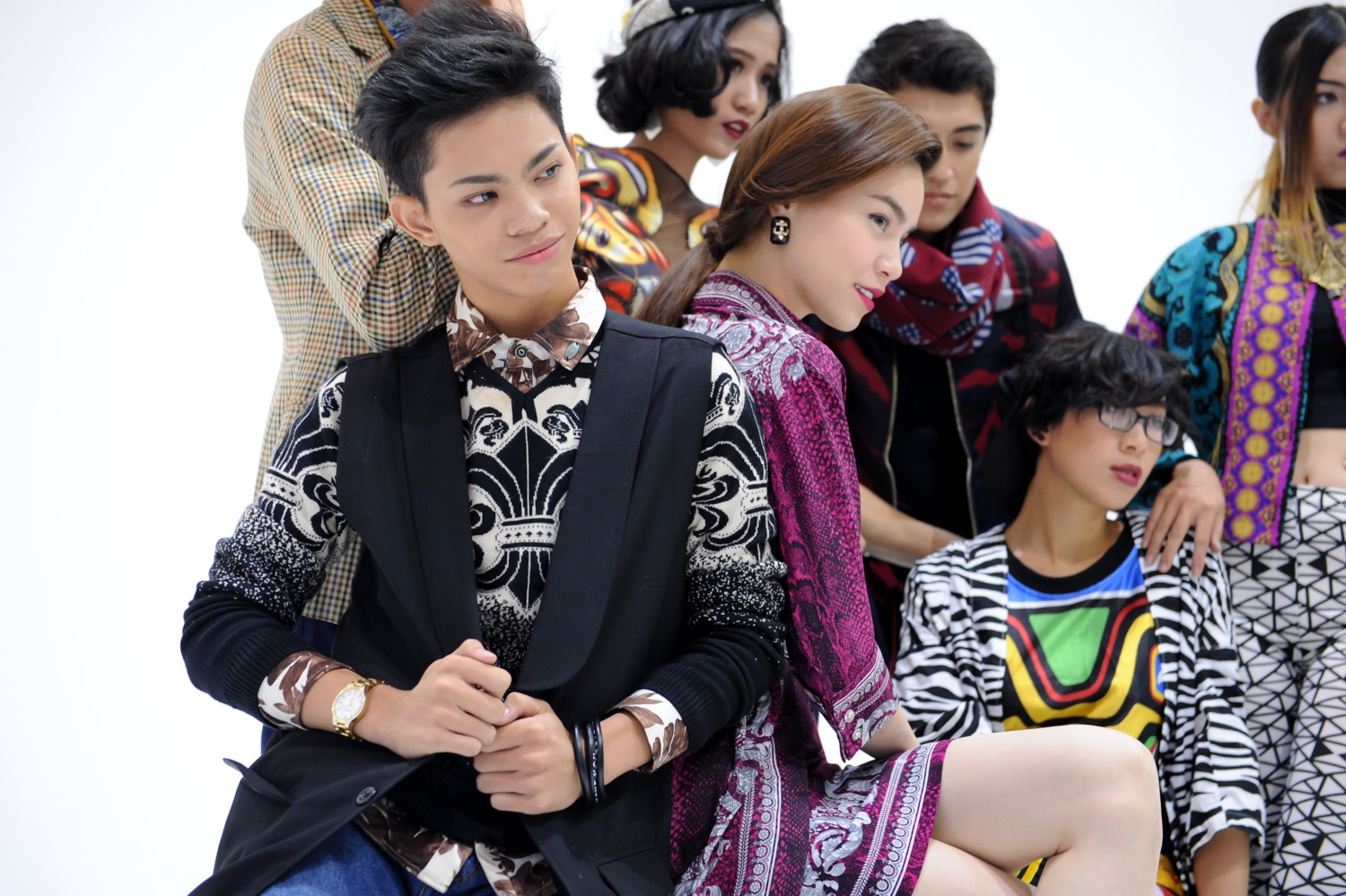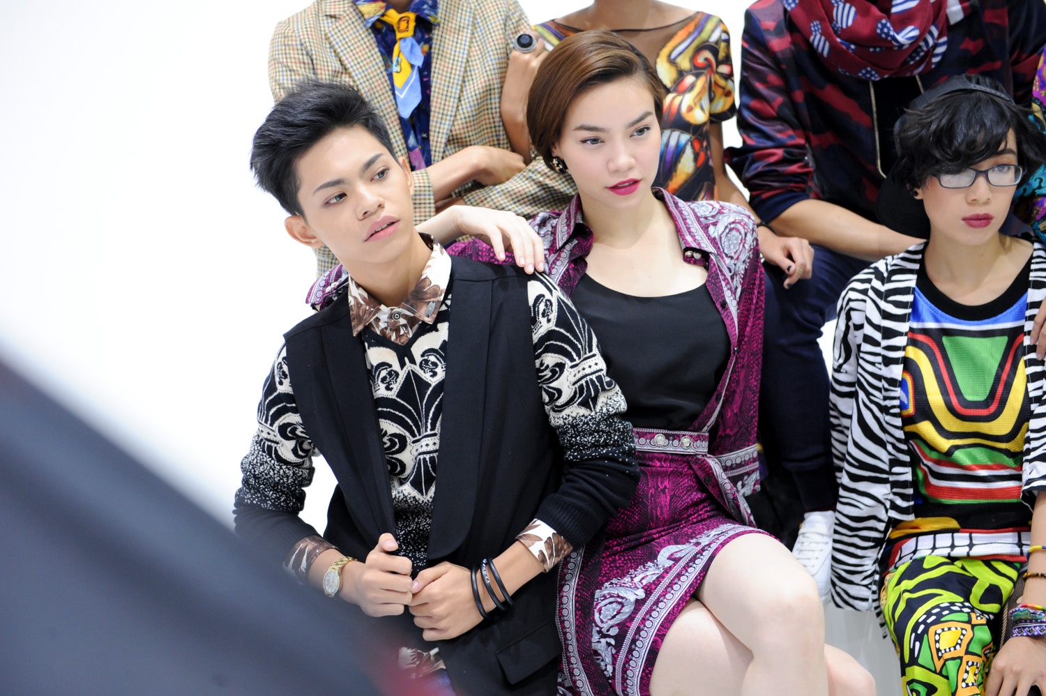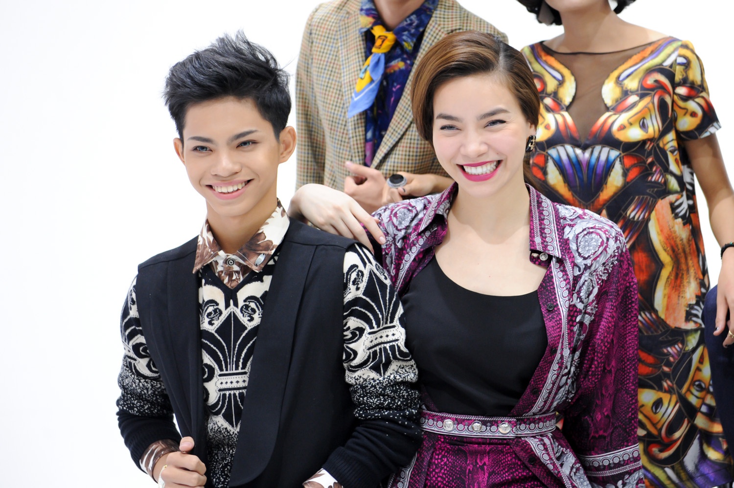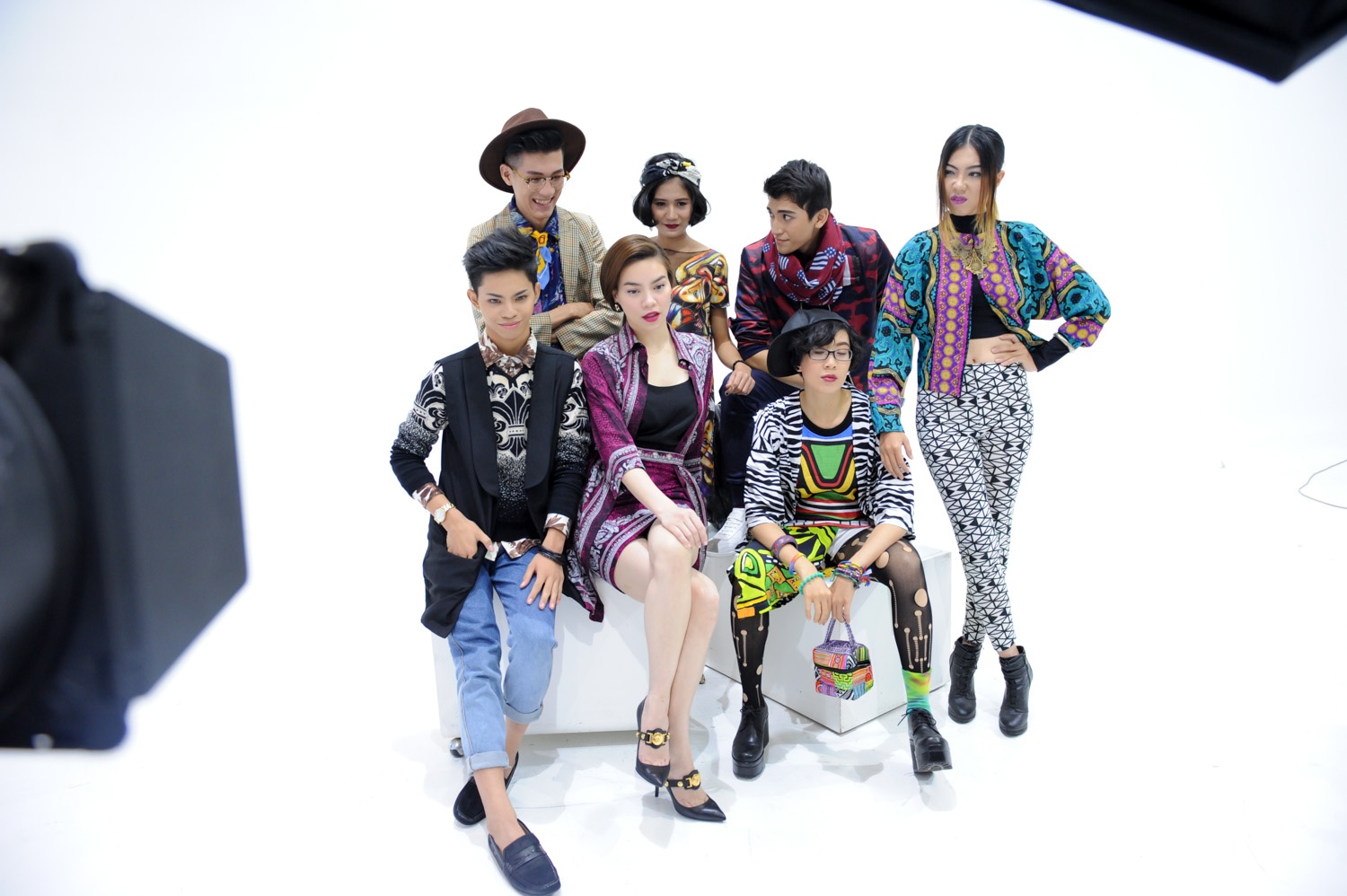 Nữ ca sĩ hào hứng trong buổi chụp hình cùng các thí sinh chương trình Fashionista Việt Nam, cô có dịp gặp gỡ với thí sinh Alex Dương – người được coi là bản sao của mình.