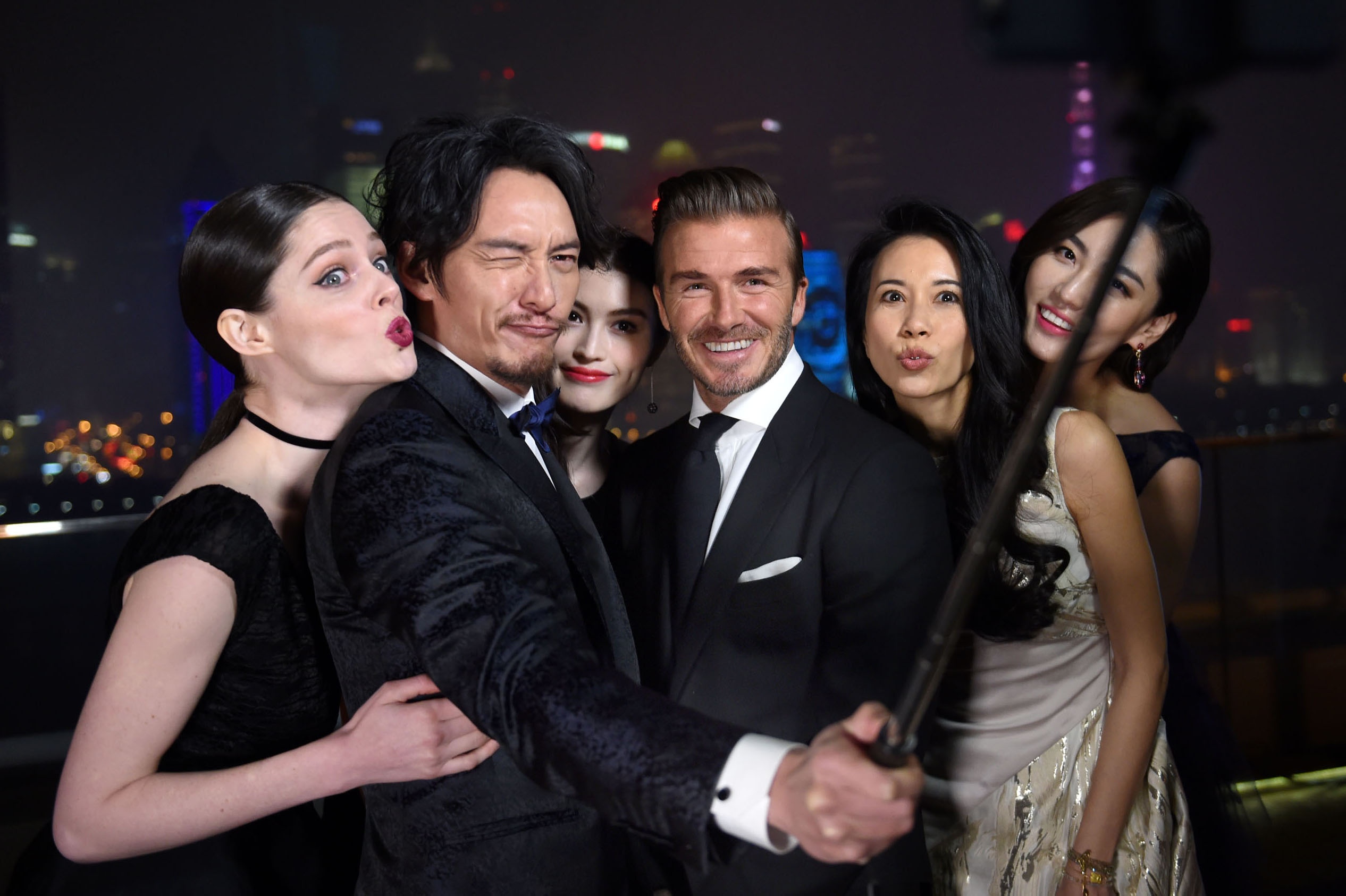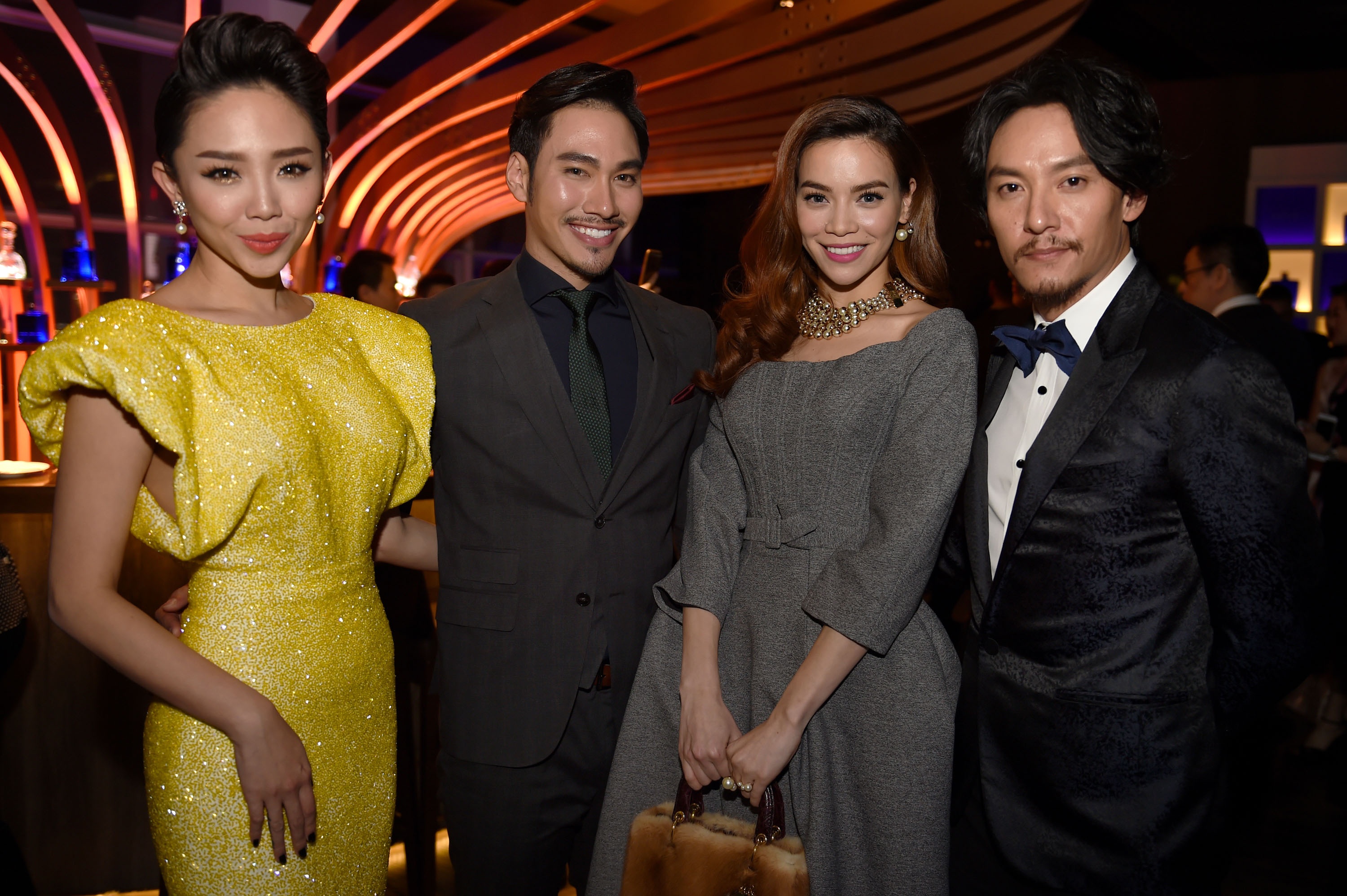 | Tối 14/1, Hồ Ngọc Hà, Lý Quí Khánh và Tóc Tiên có dịp tái ngộ David Beckham và nhiều ngôi sao quốc tế trong một buổi tiệc sang trọng tại thành phố Thượng Hải, Trung Quốc. Trong ảnh, ba đại diện Việt gặp gỡ ngôi sao phim Ngọa hổ tàng long (phiên bản năm 2000) - Trương Chấn (ngoài cùng bên phải). |