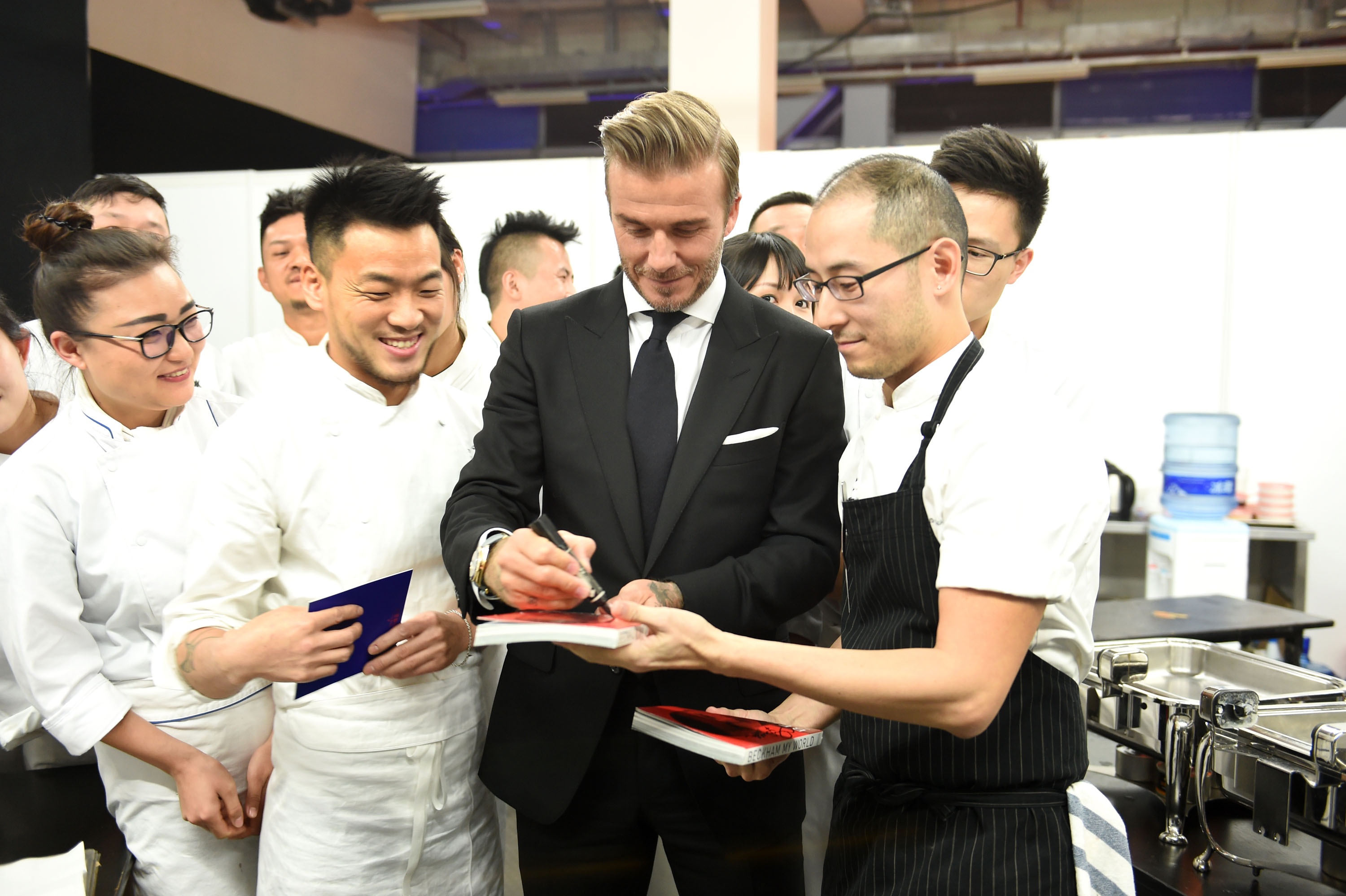 David Beckham nổi bật ở sự kiện với trang phục vest trắng đen lịch lãm. Cựu cầu thủ điển trai chụp ảnh cùng khách mời. |
