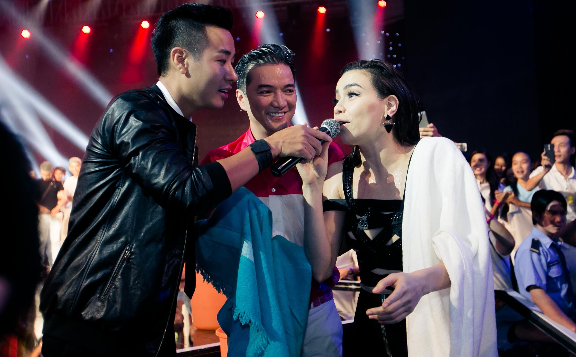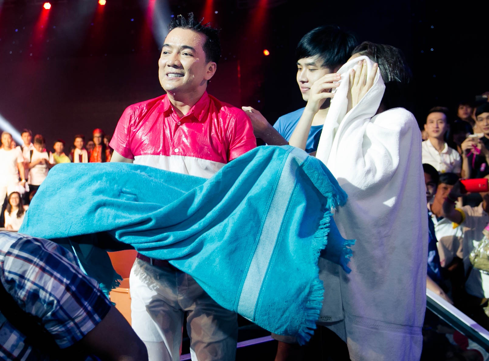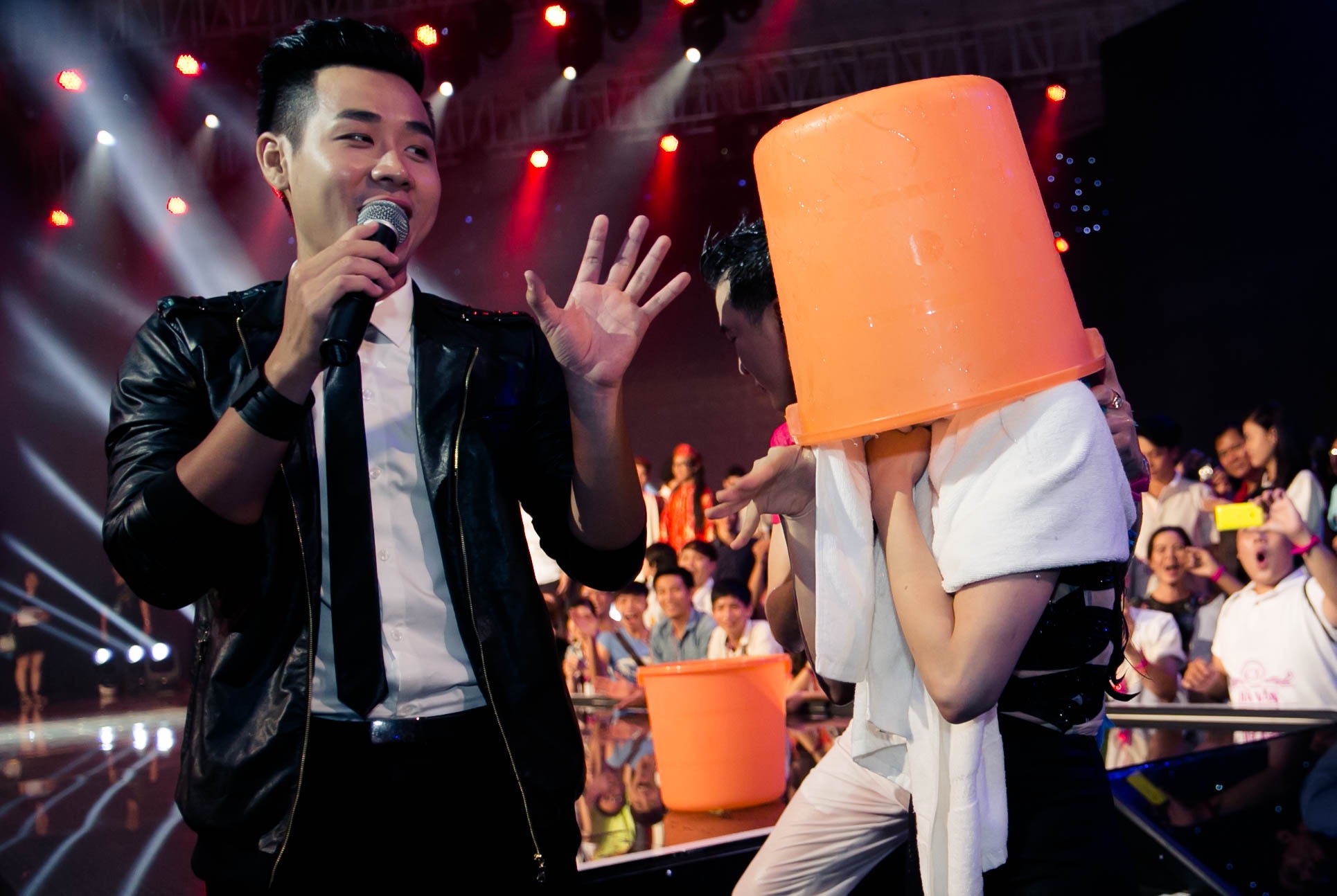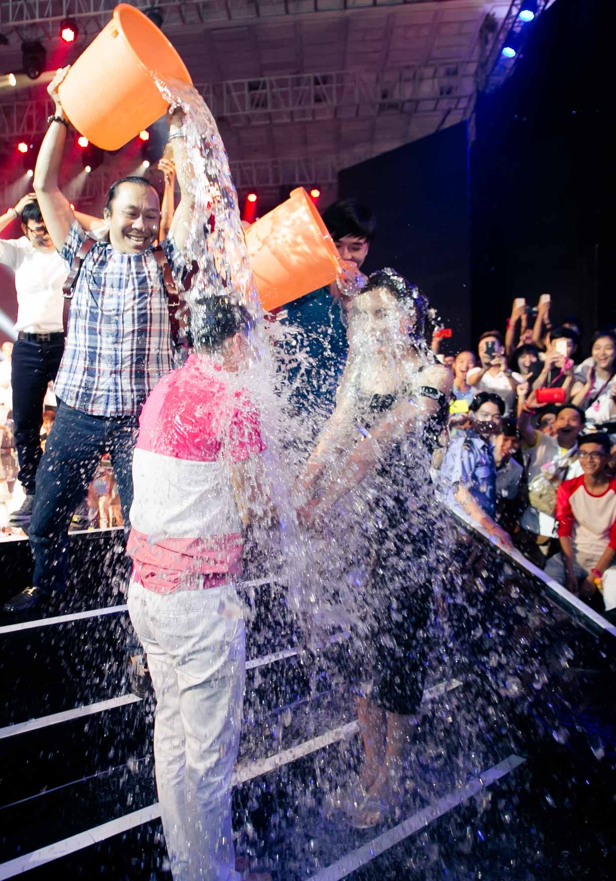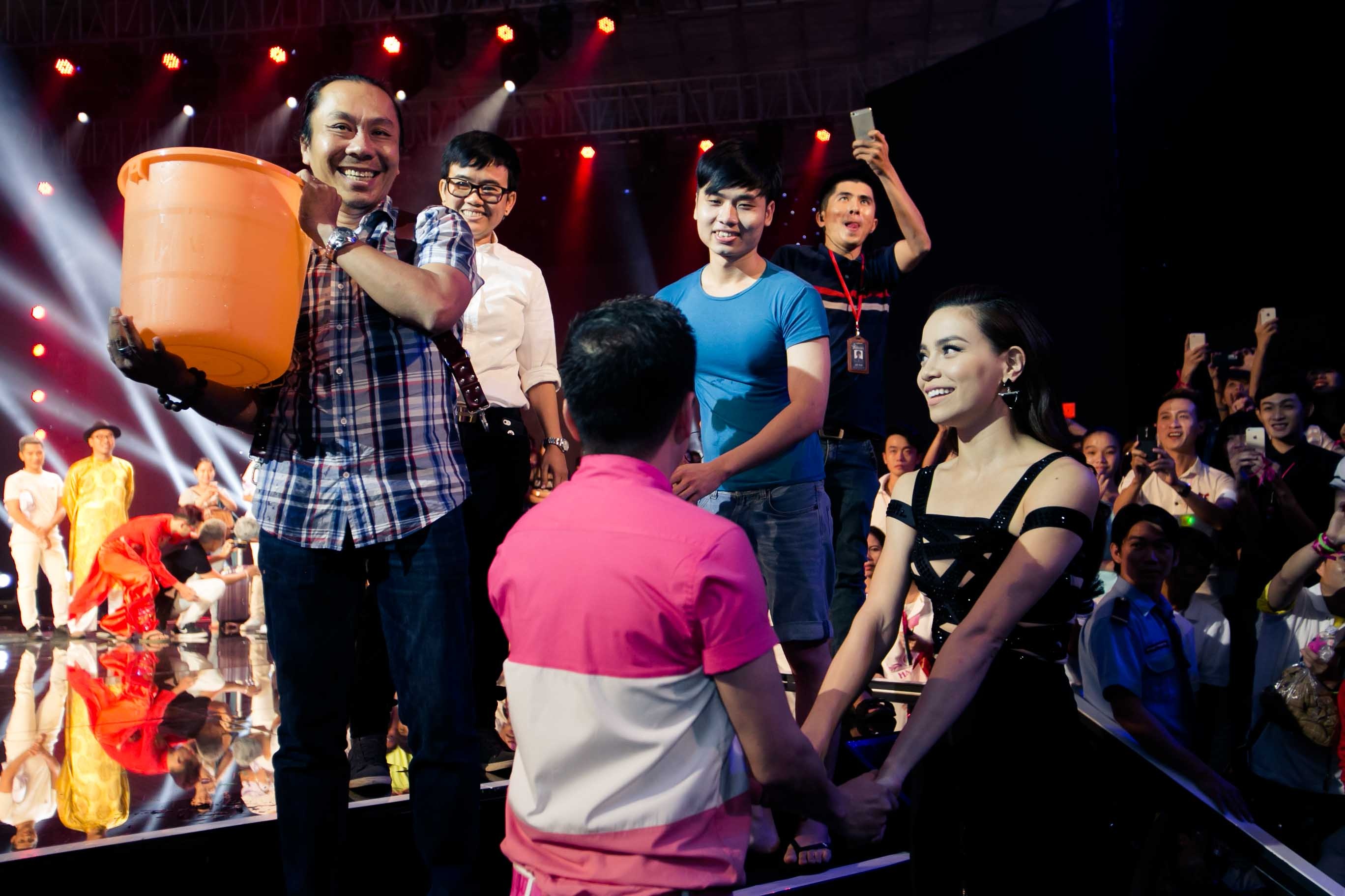 Hà Hồ và Mr Đàm bị xối nước đá trước mắt hàng ngàn khán giả