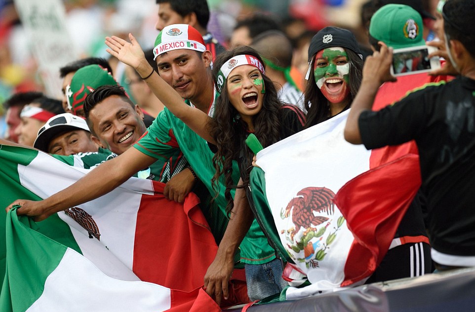 | Niềm vui vỡ òa với các cầu thủ và người hâm mộ Mexico sau khi trọng tài nổi hồi còi kết thúc trận đấu. |