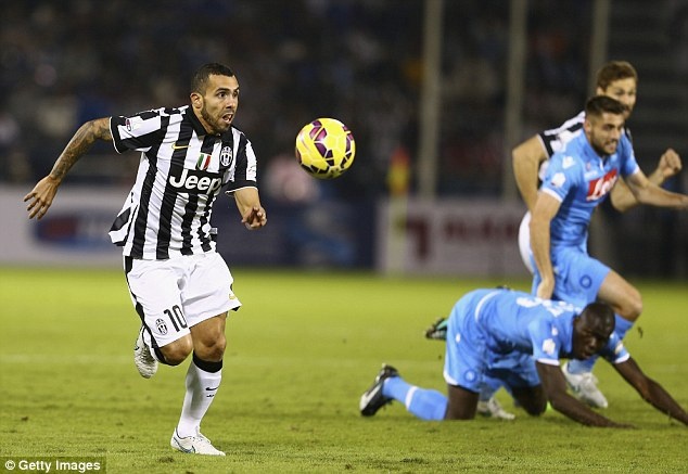 | Khi khán giả tại Doha (Qatar) chỉ vừa ổn định chỗ ngồi, tiền đạo Carlos Tevez đã tận dụng rất tốt sai lầm của các hậu vệ Napoli để ghi bàn mở tỷ số cho Juventus ở phút thứ 5. |