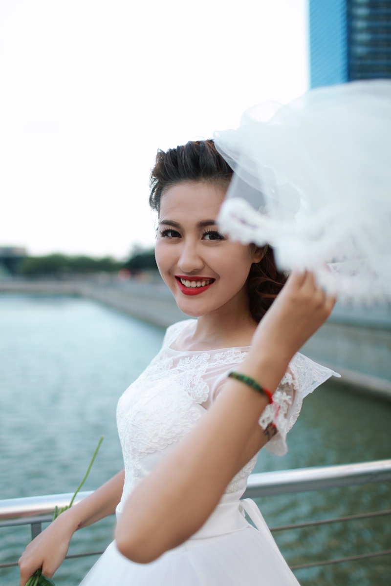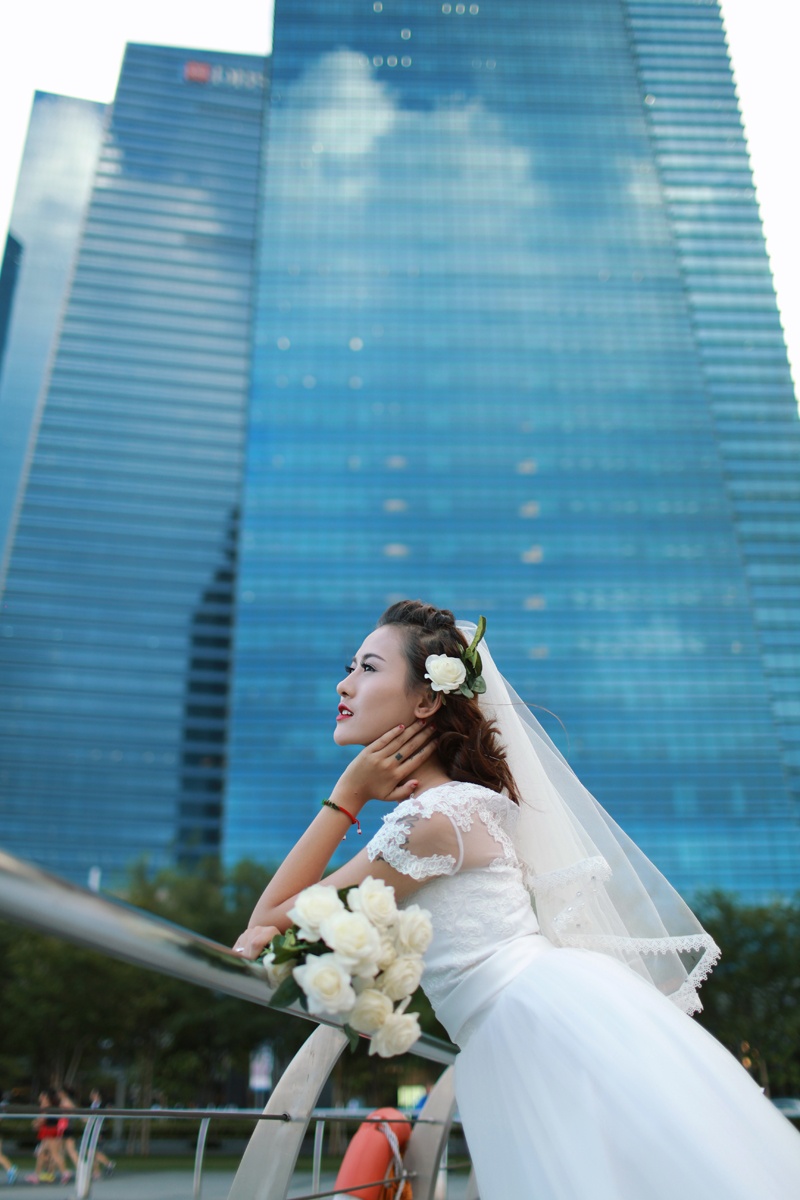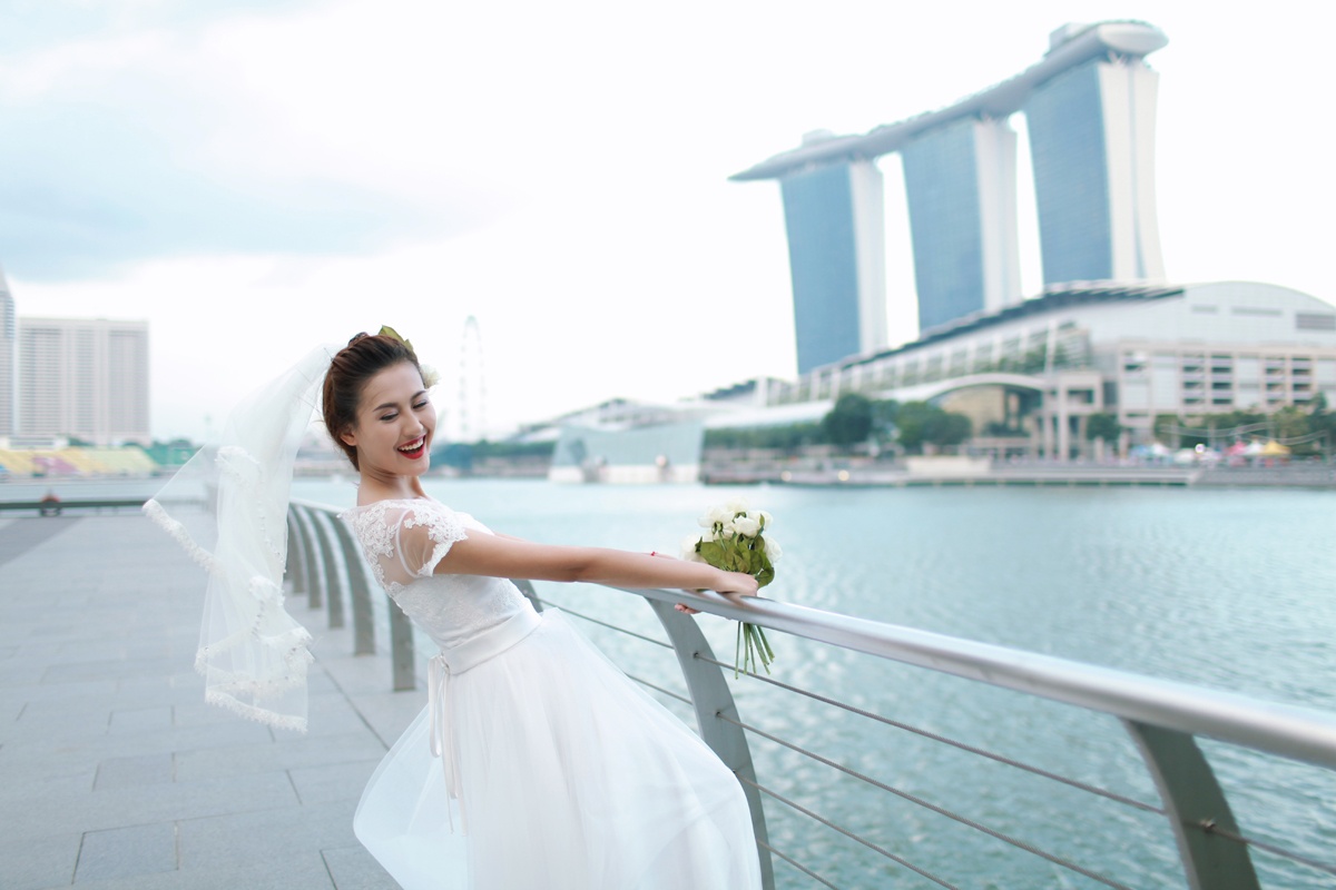 Hà Lade một mình chụp ảnh cô dâu tại Singapore