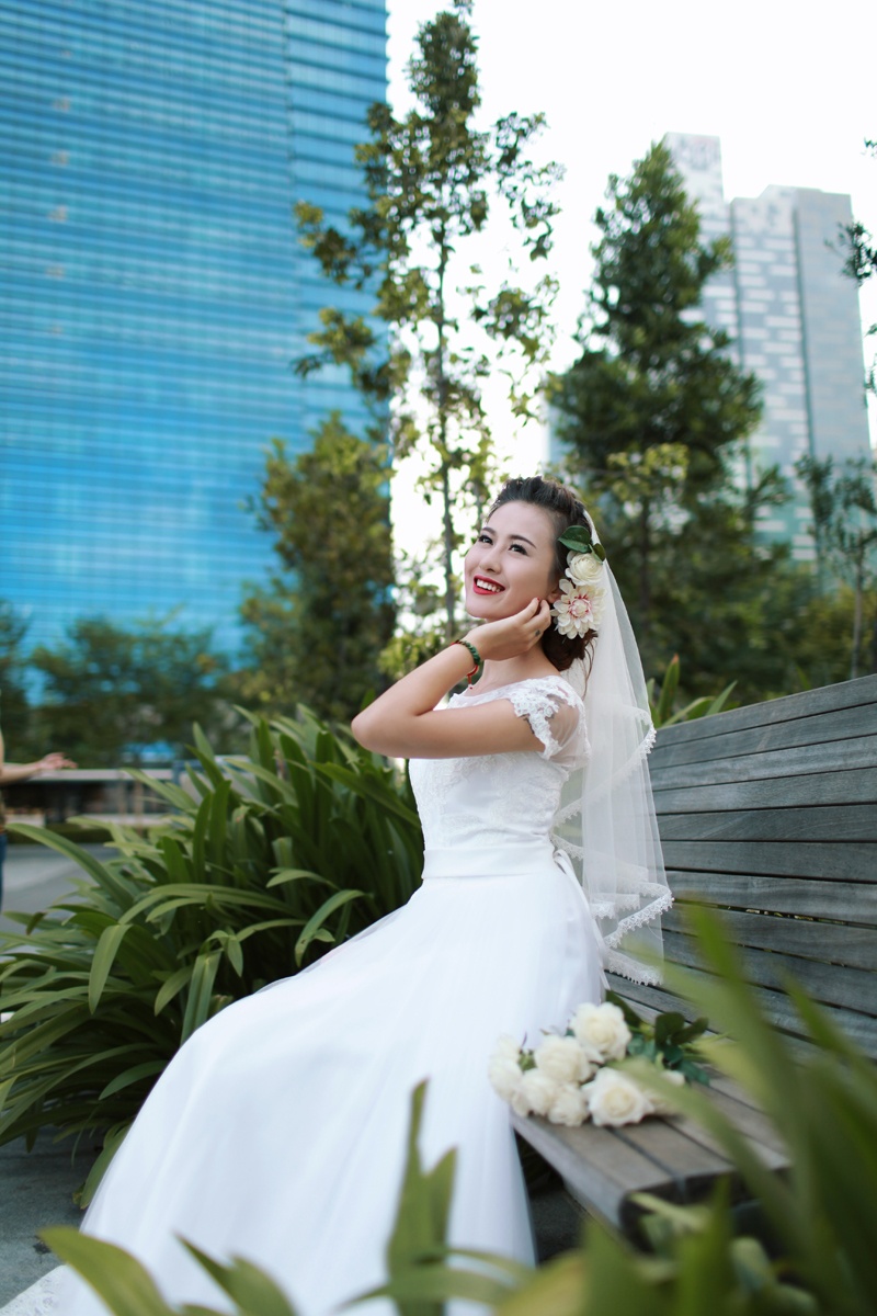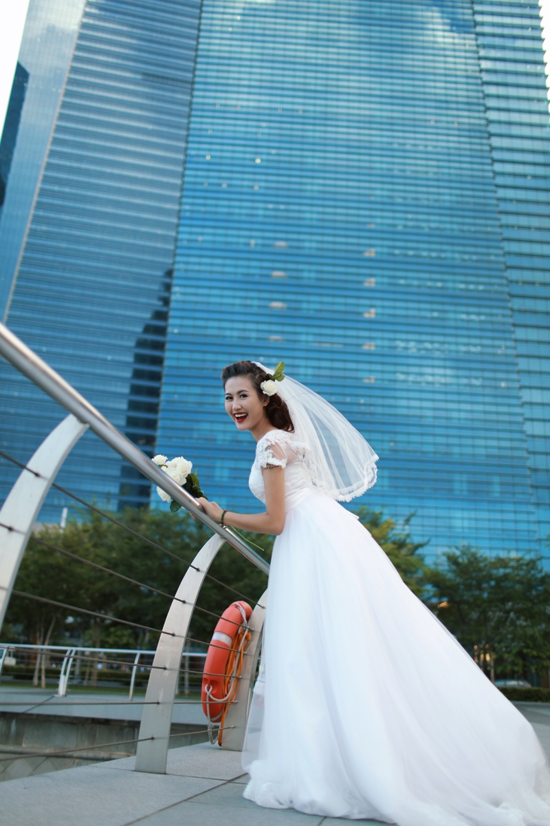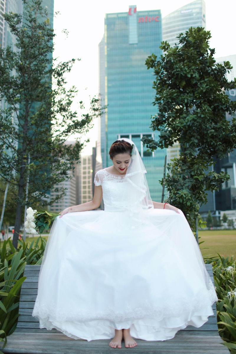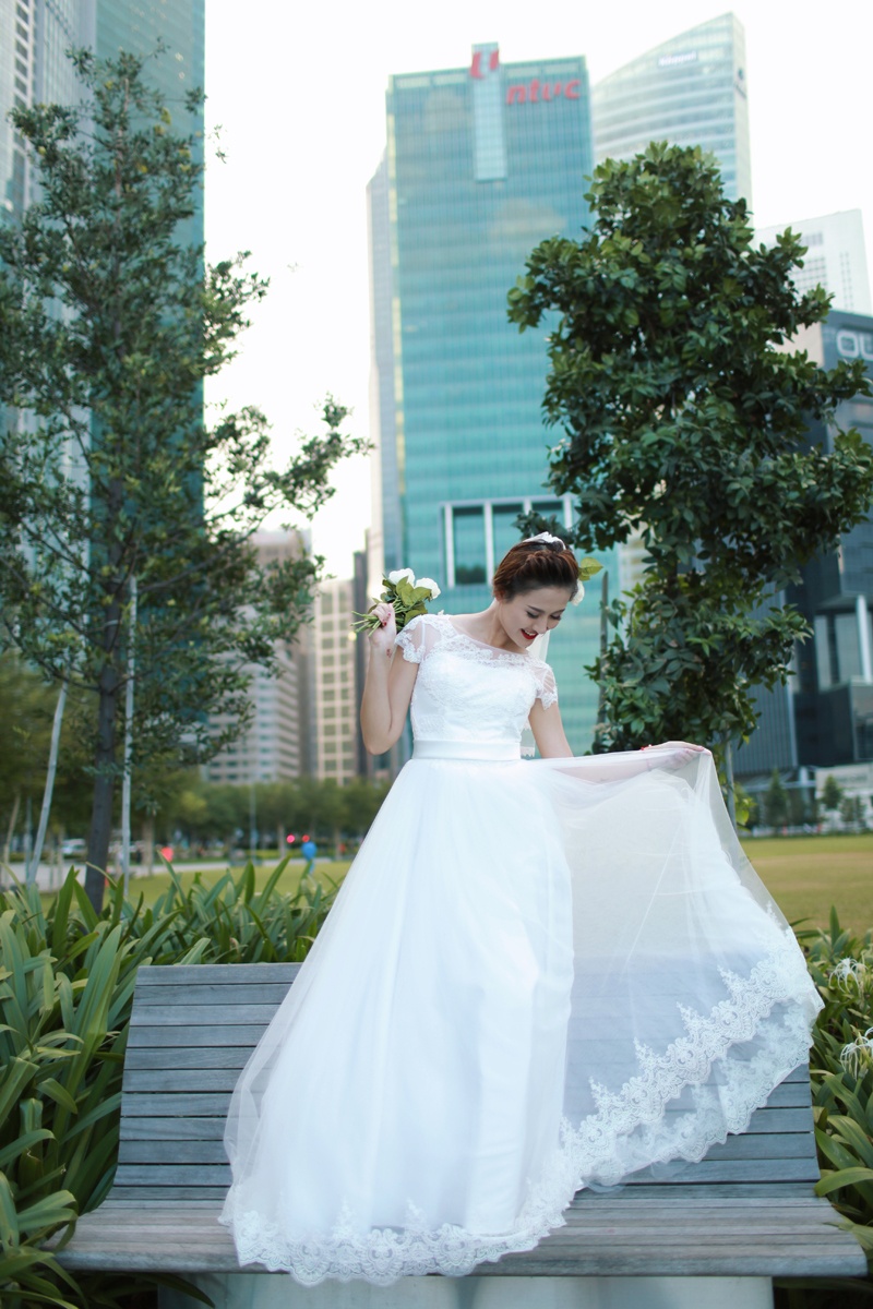 Hà Lade một mình chụp ảnh cô dâu tại Singapore