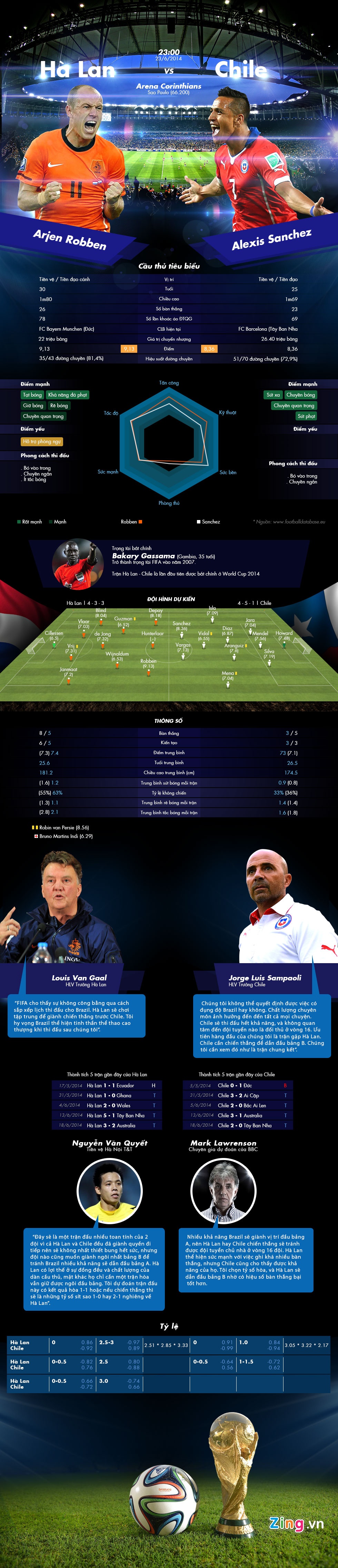 Hai đội có tổng cộng tới 13 lần sút tung lưới đối phương trước khi bước vào lượt trận cuối bảng B. Cùng đặt mục tiêu chiến thắng, Hà Lan và Chile hứa hẹn tạo ra thế trận cởi mở.