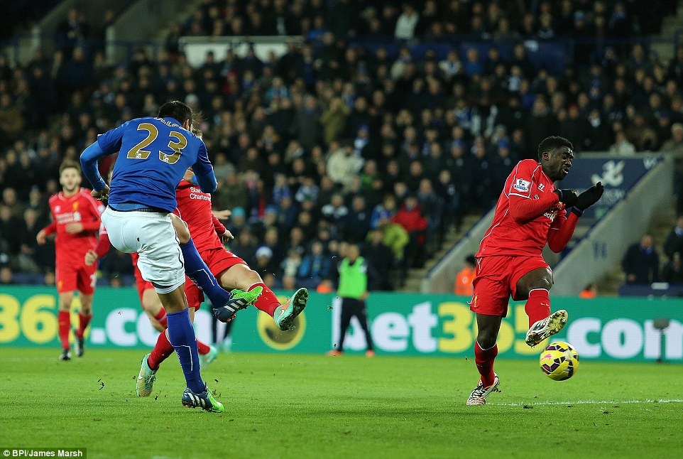 Phút 22, Leicester bất ngờ vượt lên dẫn trước. Cú sút rất mạnh của Ulloa đưa bóng dội cột dọc bật ra song lại dội vào lưng thủ thành Mignolet bay ngược trở lại lưới Liverpool.
