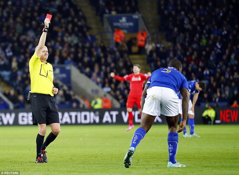 | Khó khăn càng chồng chất lên Leicester khi trung vệ Morgan nhận thẻ đỏ trực tiếp sau pha phạm lỗi với Lambert ở phút 63. |