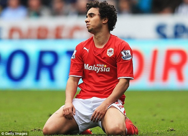 | Tài năng trẻ Wilfried Zaha bất lực trong việc giúp Cardiff trụ hạng. Zaha là cầu thủ thuộc biên chế M.U nhưng chơi cho CLB xứ Wales theo diện cho mượn. |