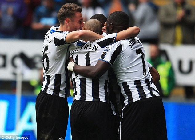 | Niềm vui của các cầu thủ Newcastle sau đè bẹp Cardiff. |