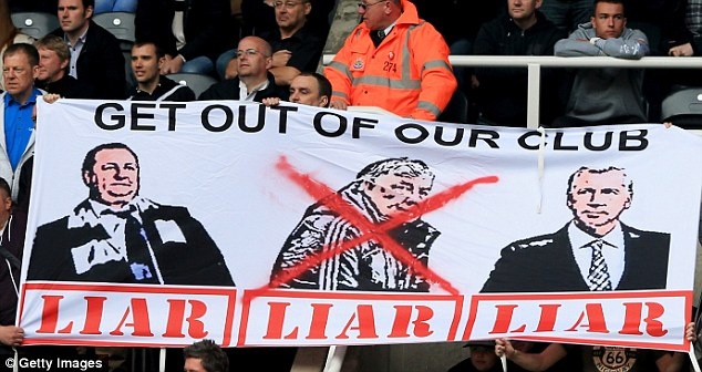 | Tuy Chích chòe đứng thứ 9 sau 37 vòng đấu nhưng CĐV đội bóng này vẫn đòi Chủ tịch Mike Ashley và HLV Alan Pardew phải rời CLB. |