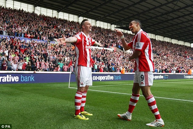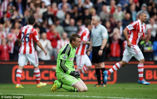 | Ở trận đấu cùng giờ, các cầu thủ Stoke thay nhau nã đạn vào lưới Fulham. |