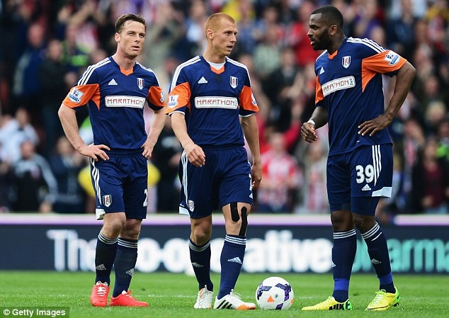 | Nỗi thất vọng của các cầu thủ Fulham sau khi chính thức bị giáng hạng. |