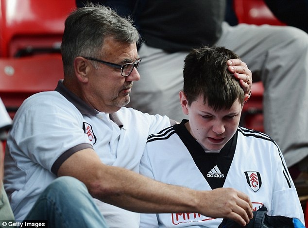 | Những CĐV Fulham đã không cầm được nước mắt khi đội bóng con cưng bị giáng xuống chơi tại giải hạng Nhất từ mùa tới. |