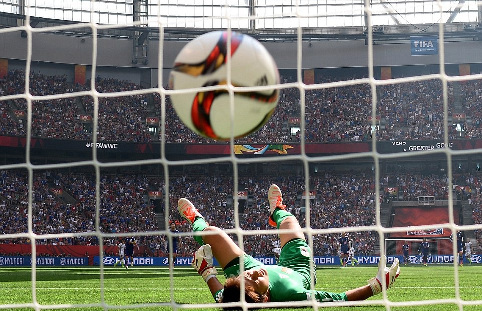 | Thủ thành Hope Solo dù rất cố gắng cũng không thể giúp tuyển Mỹ tránh khỏi bàn thua. |