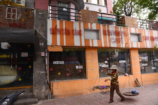 | Tòa nhà trước đây kinh doanh Bar-cafe New Window sau hơn một năm dừng hoạt động vẫn chưa có khách hàng thuê lại. |