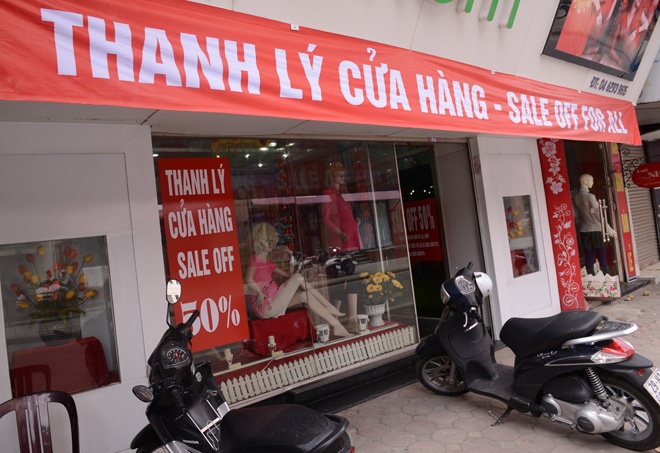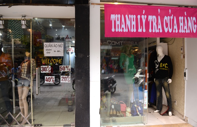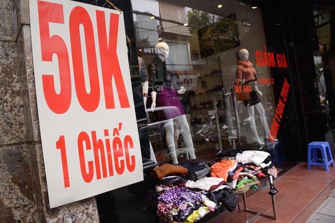 | Một cửa hành thời trang đăng biển thanh lý trên phố Thợ Nhuộm. |