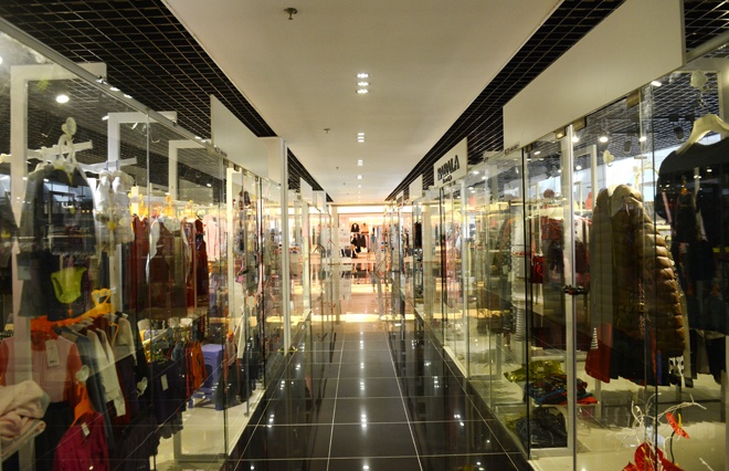 | Tuy nhiên, lượng khách hàng khá đìu hiu tại sảnh của trung tâm thương mại chợ Hàng Da. |