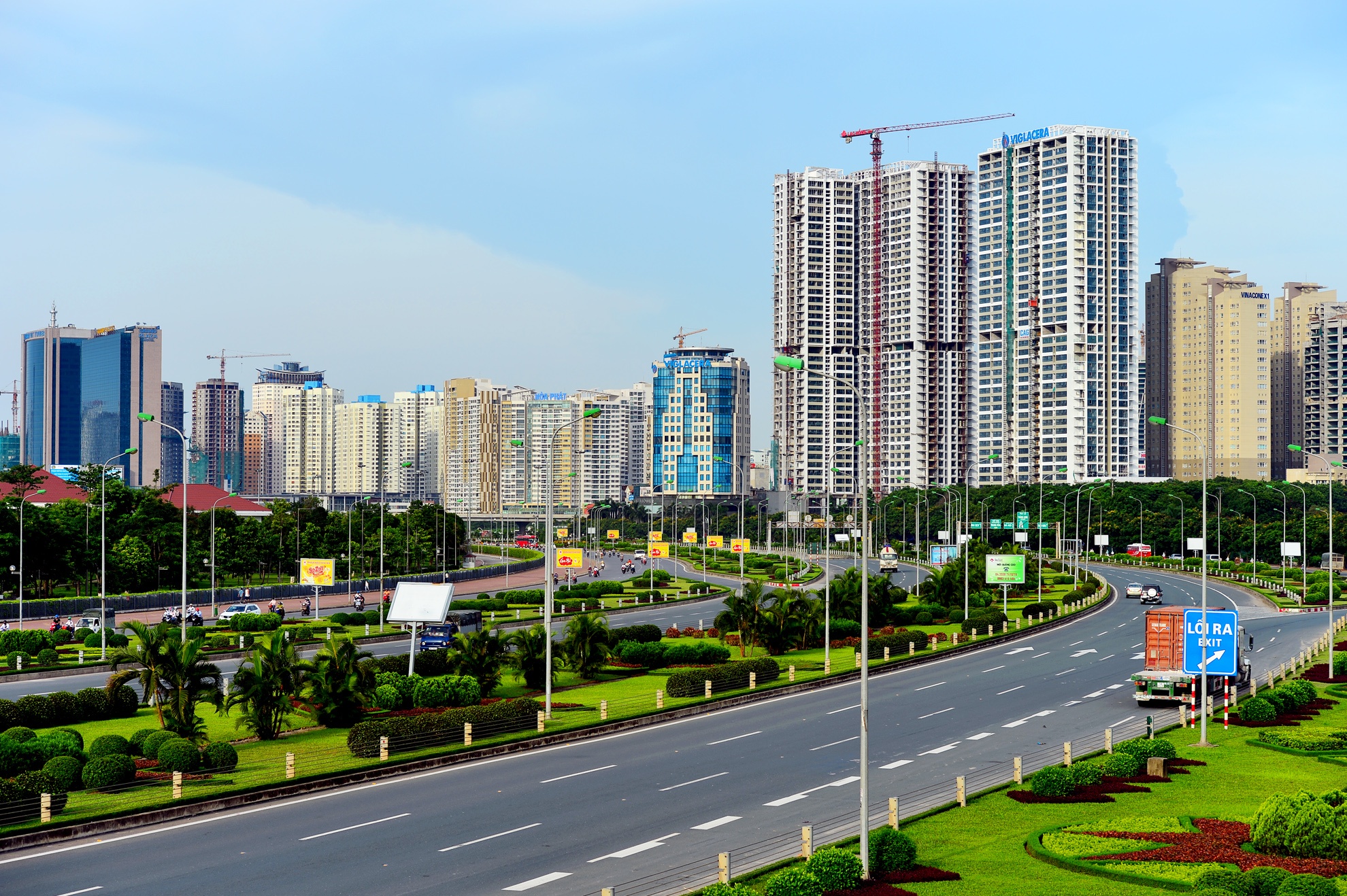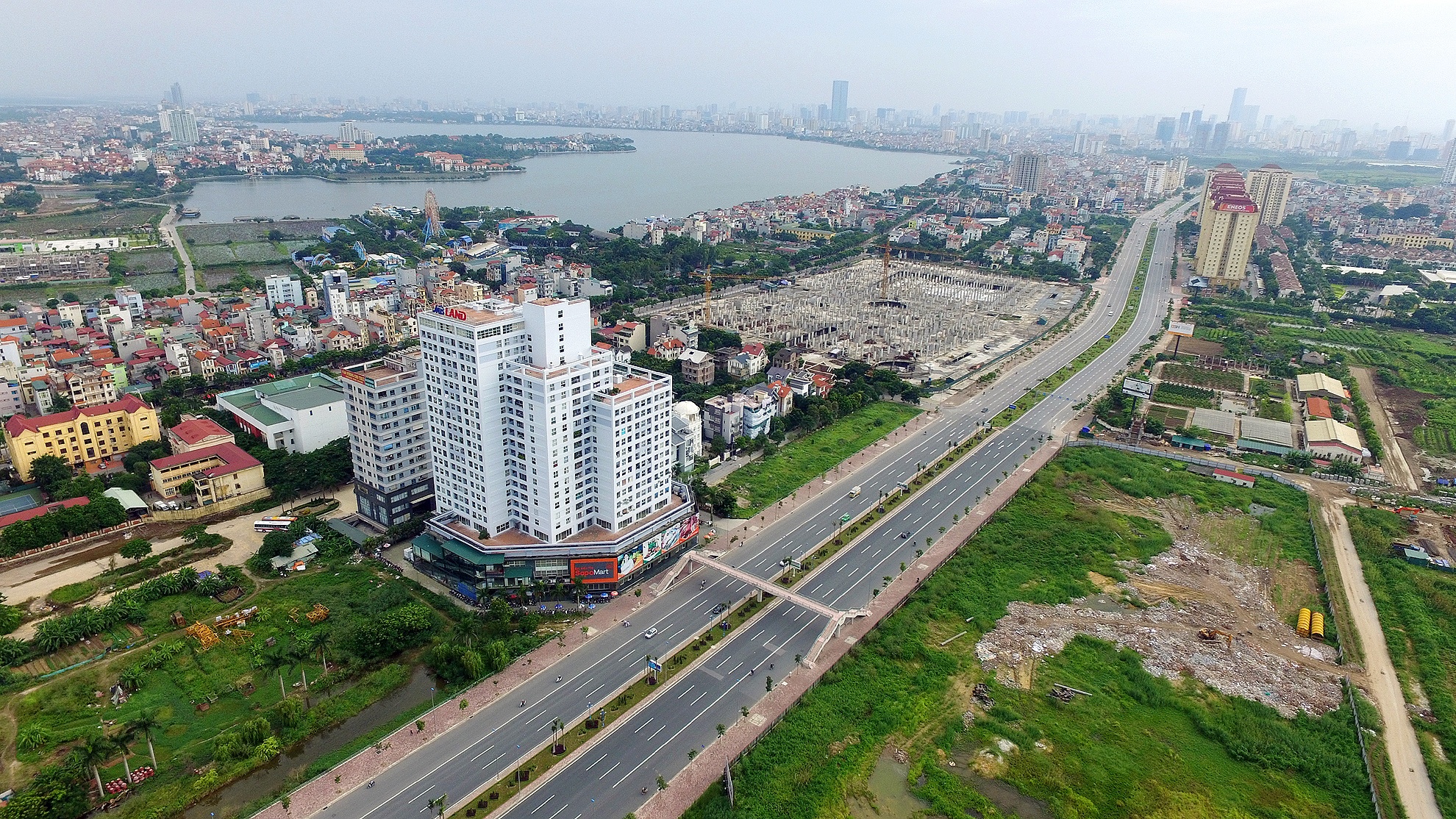 | Điểm đầu của Đại lộ Thăng Long. Phía xa là khu vực Trung Hòa Nhân Chính, nằm giữa hai quận Cầu Giấy và Thanh Xuân. |
