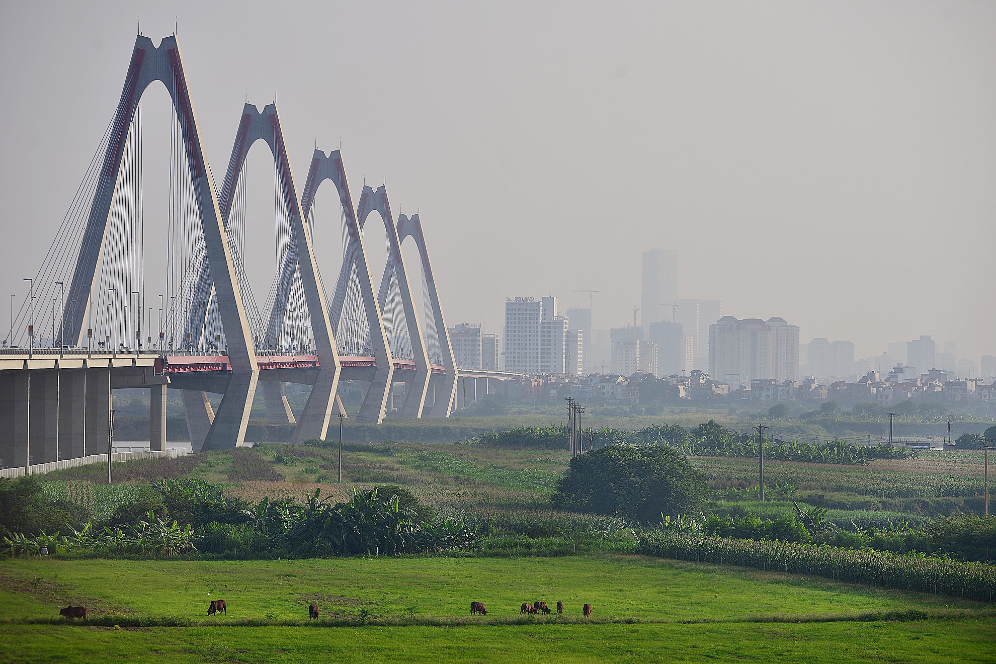 Trung tâm thủ đô nhìn từ hướng cầu Đông Trù (địa phận huyện Đông Anh).