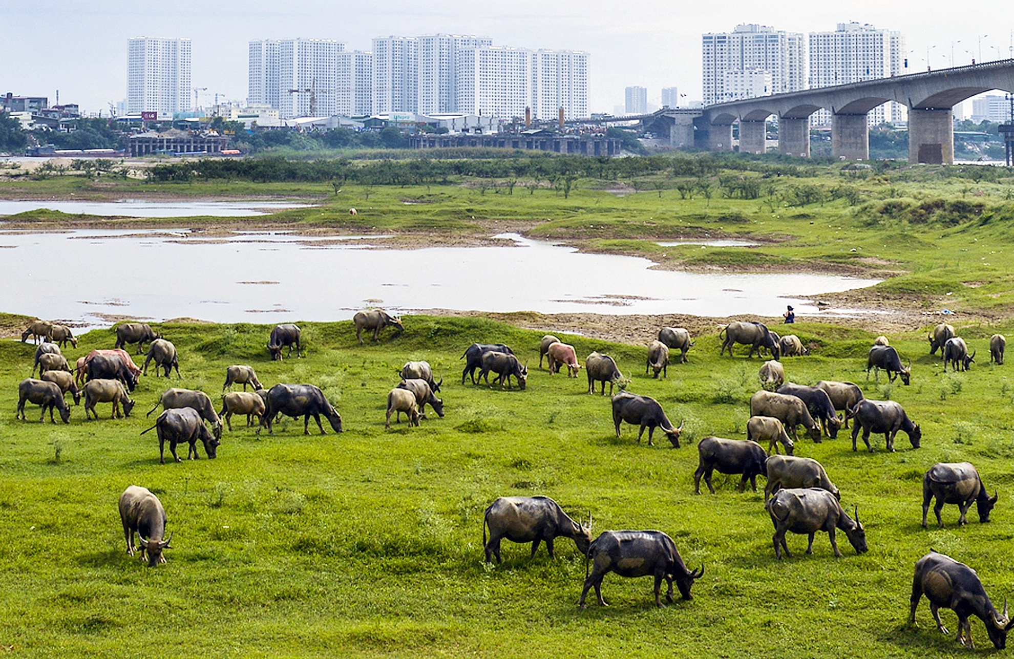 Có những đoạn nảy sinh sự đối lập nhưng khá gần gũi, nông thôn ngay ven thành phố, thậm chí còn chưa ngăn cách hết một khúc sông.