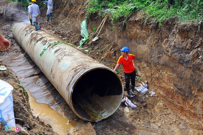 | Đường ống dẫn nước được thay thế bằng loại ống làm bằng vật liệu gang dẻo tăng khả năng chịu lực. Ảnh: Hoàn Nguyễn. |