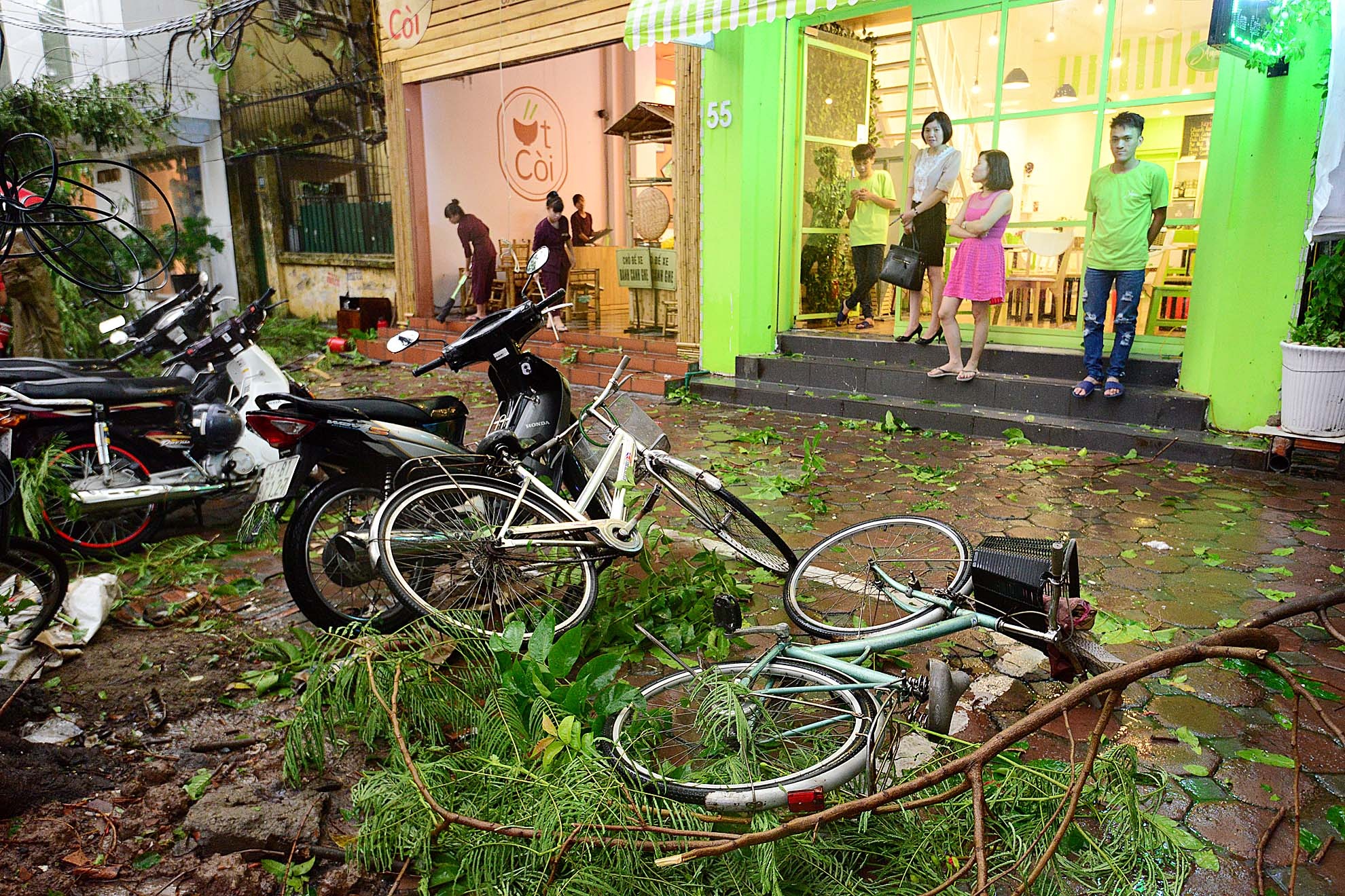 | Những cành cây lớn đổ ập xuống khiến nhiều người dân bất ngờ, hoảng hốt. |