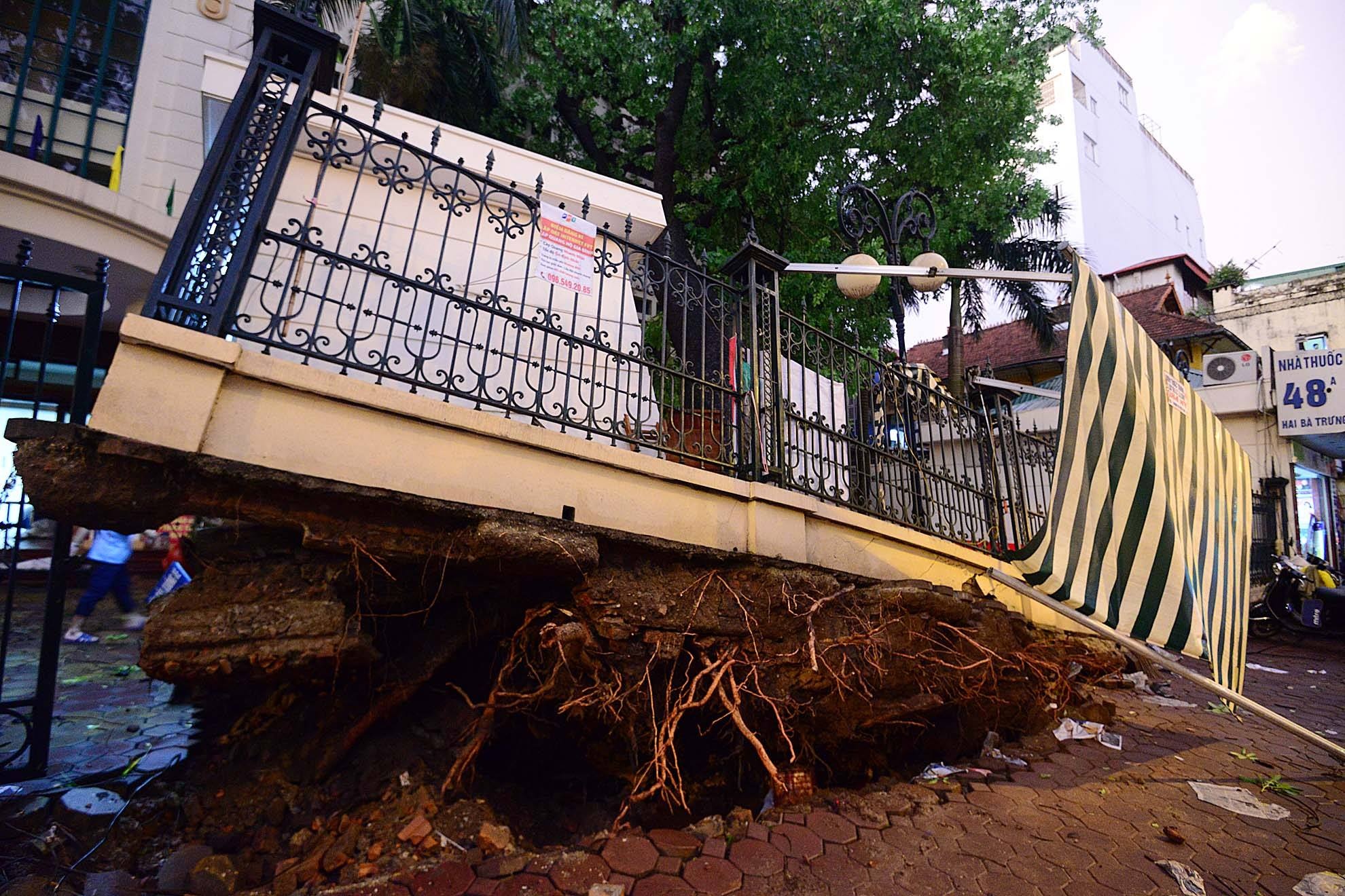 | Rễ cây bật gốc trên nhiều tuyến phố. |