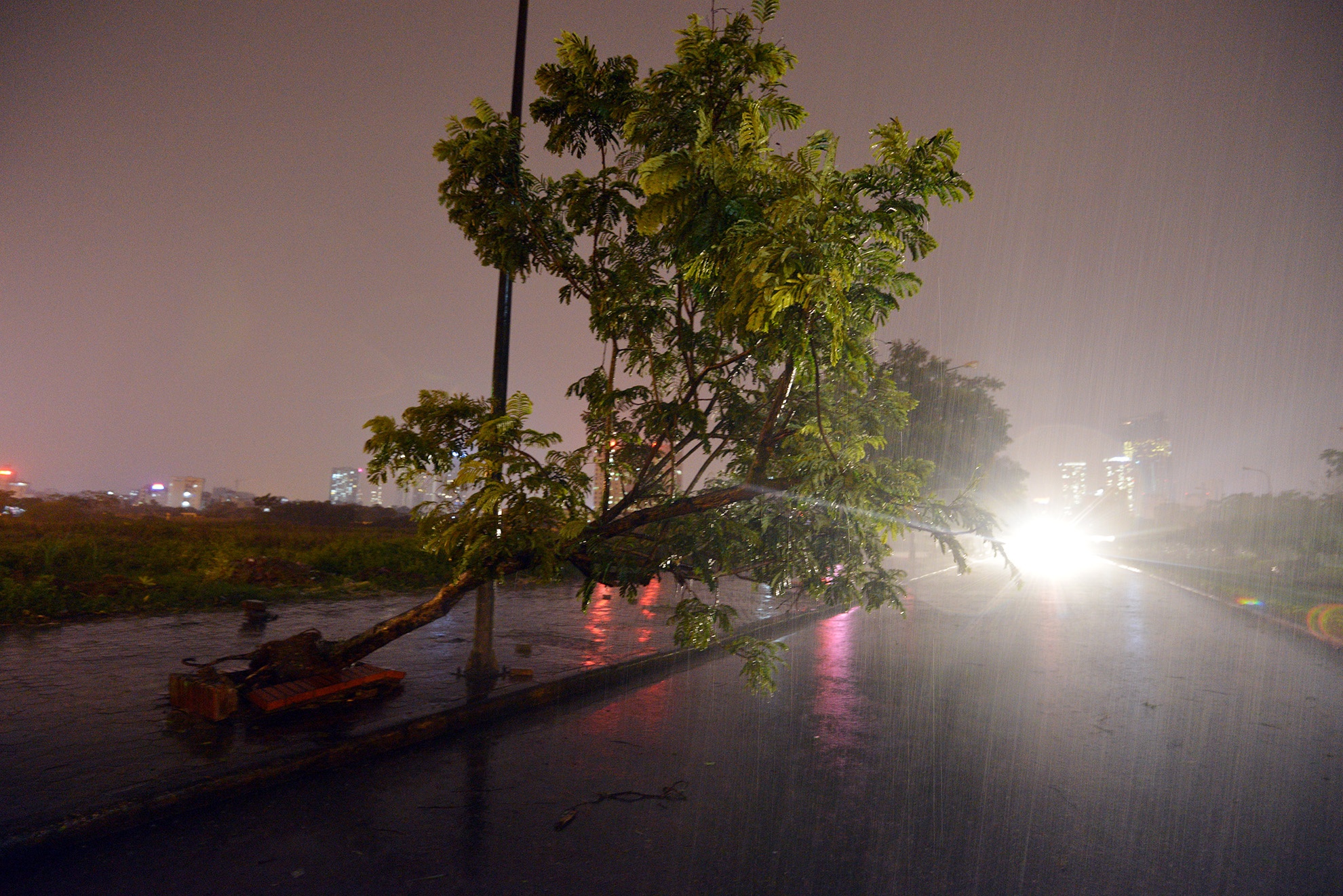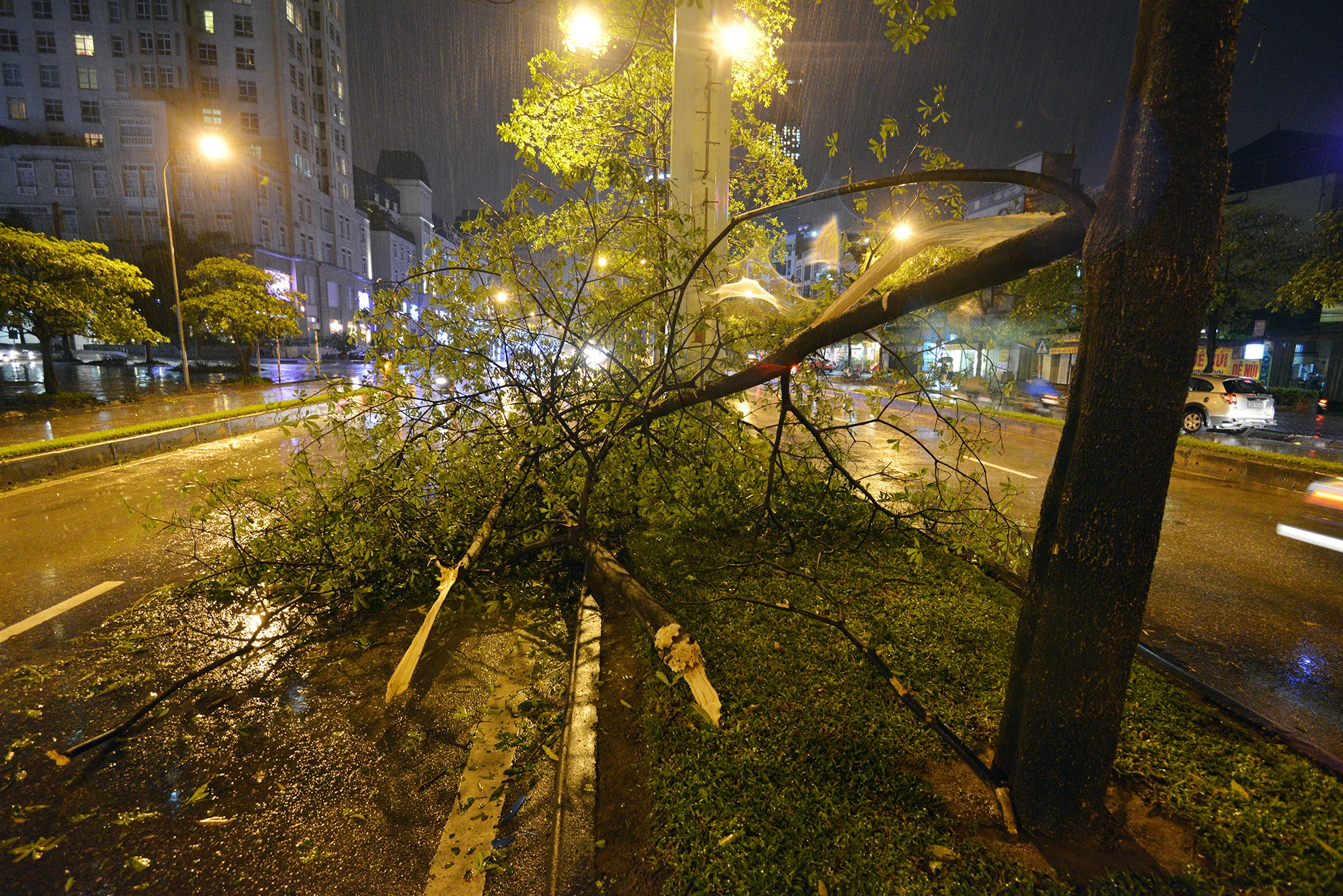 Trận mưa sau đó tiếp tục khiến nhiều cây xanh bị quật ngã.