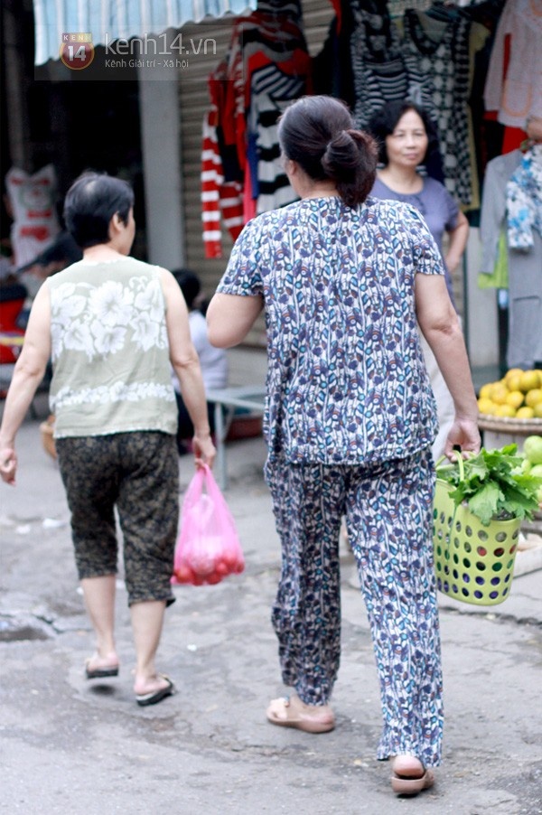Chị Hà Minh Ngọc (35 tuổi) cho biết: “Tối qua nghe dự báo thời tiết nói bão đi lên phía Bắc, gây mưa to có thể làm Hà Nội ngập úng nên sáng nay tôi tranh thủ đi chợ sớm để mua thêm thực phẩm dự trữ. Tôi mua nhiều rau và thịt vì những thứ này để tủ lạnh được lâu và có thể sẽ khan hiếm nếu trời mưa ngập. Tôi thấy nhiều người cũng mua như tôi, nhưng giá thịt và rau vẫn như mọi ngày, không bị tăng”.