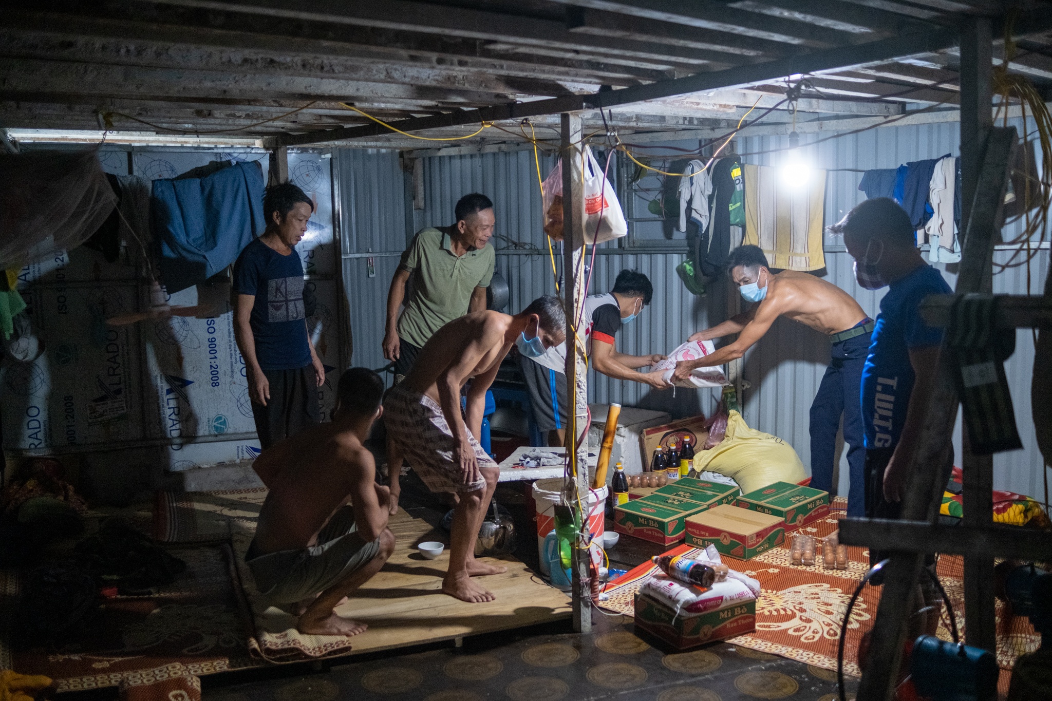 Trước đợt giãn cách, họ chạy xe chở vật liệu xây dựng. Khi công trình nghỉ, không ai kịp về quê, cả nhóm cố gắng động viên nhau bám trụ cho hết giãn cách.