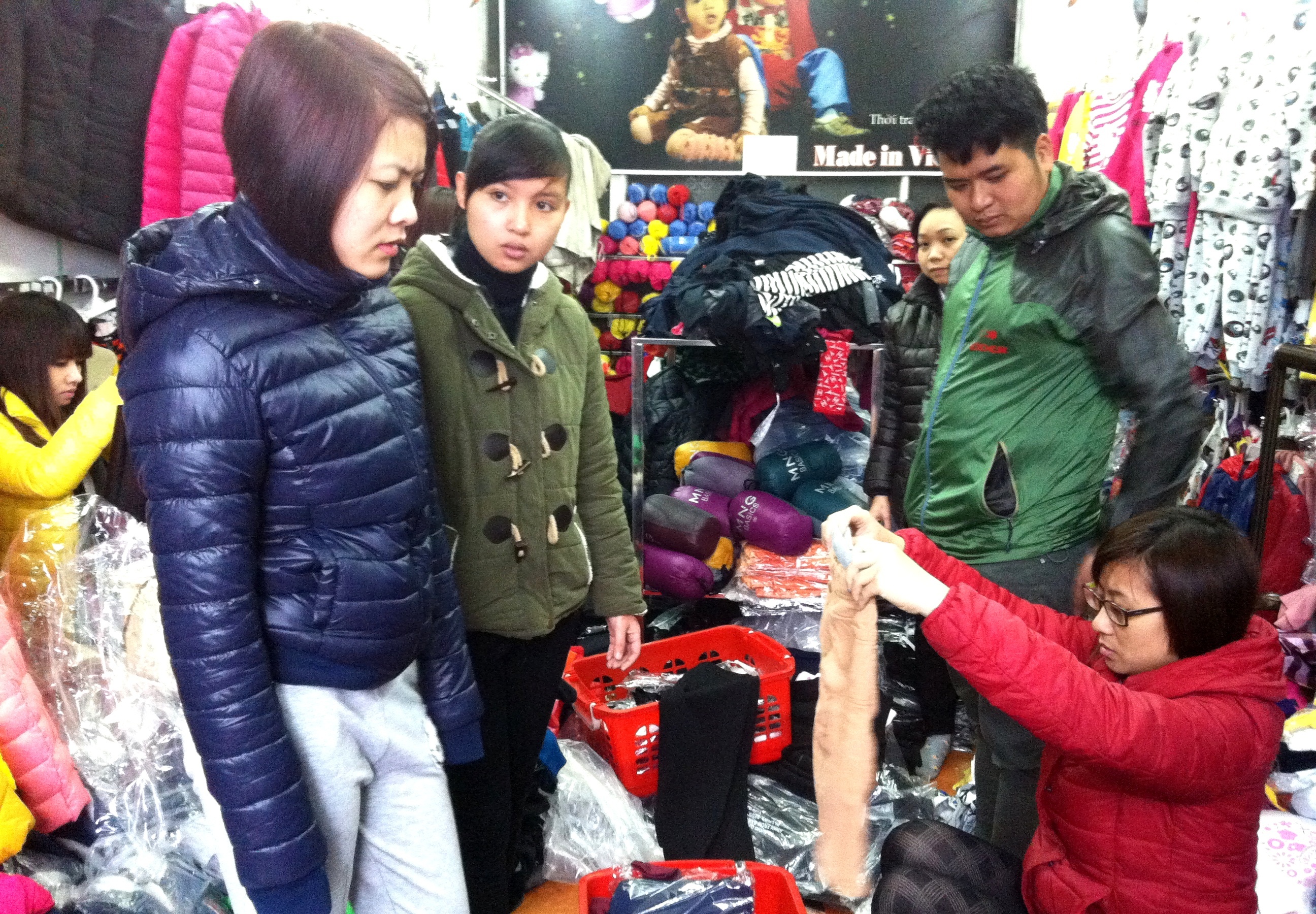 Cố gắng lắm mới có một chỗ đứng trong cửa hàng quần áo Made in Vietnam treo biển "giảm giá 70%" đang chật như nêm trên phố Thụy Khuê, chị Hải Hà một tay chọn áo ấm cho con, một tay bấm điện thoại rủ nhóm bạn thân gần đó tới mua chung. Chị cho biết, tuy quảng cáo giảm 70% nhưng thực tế giá đó chỉ áp dụng cho một số loại quần áo trẻ em, còn hàng áo khoác ấm và đẹp chỉ giảm 20-30%, nếu mua nhiều chủ hàng mới để giá tốt.