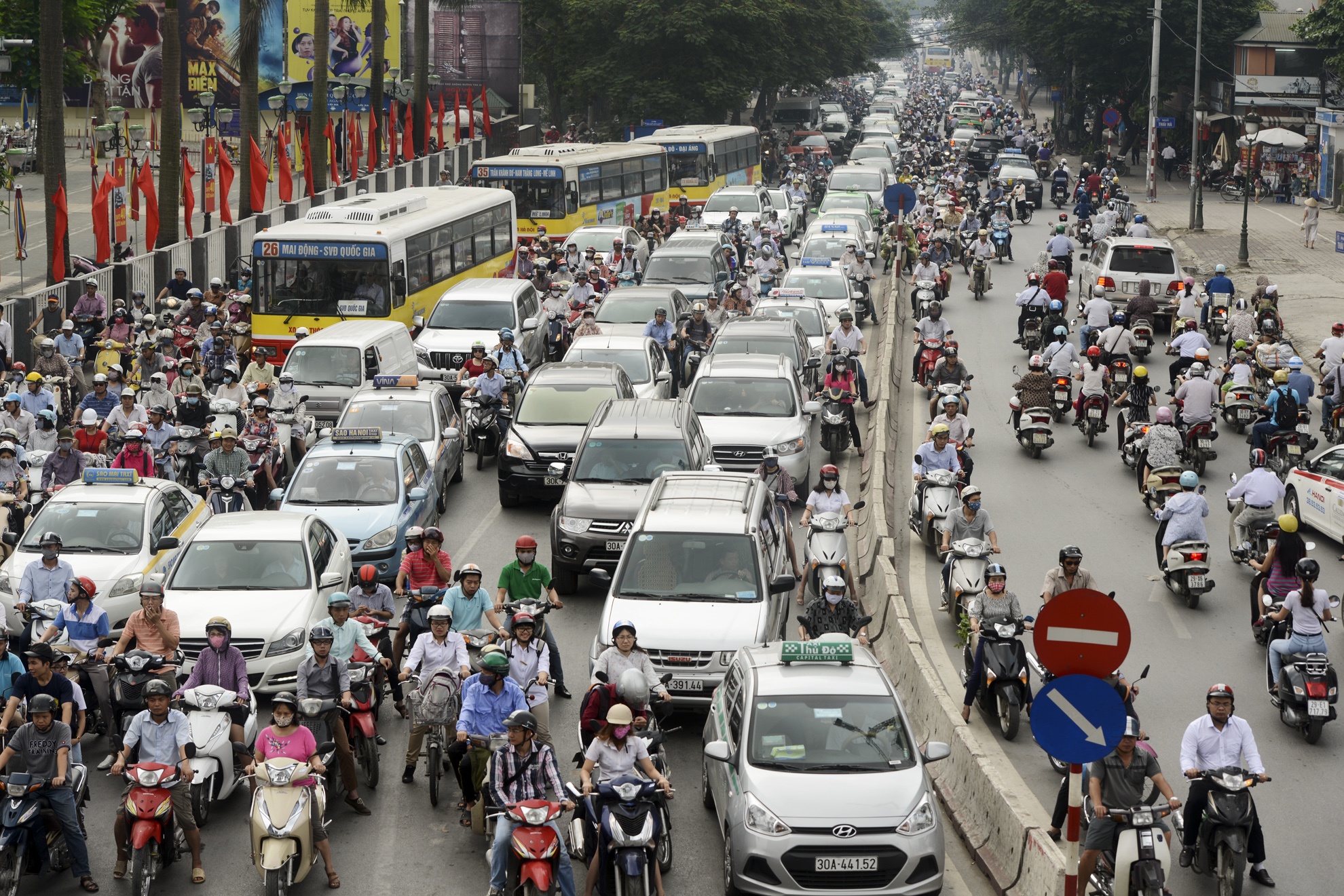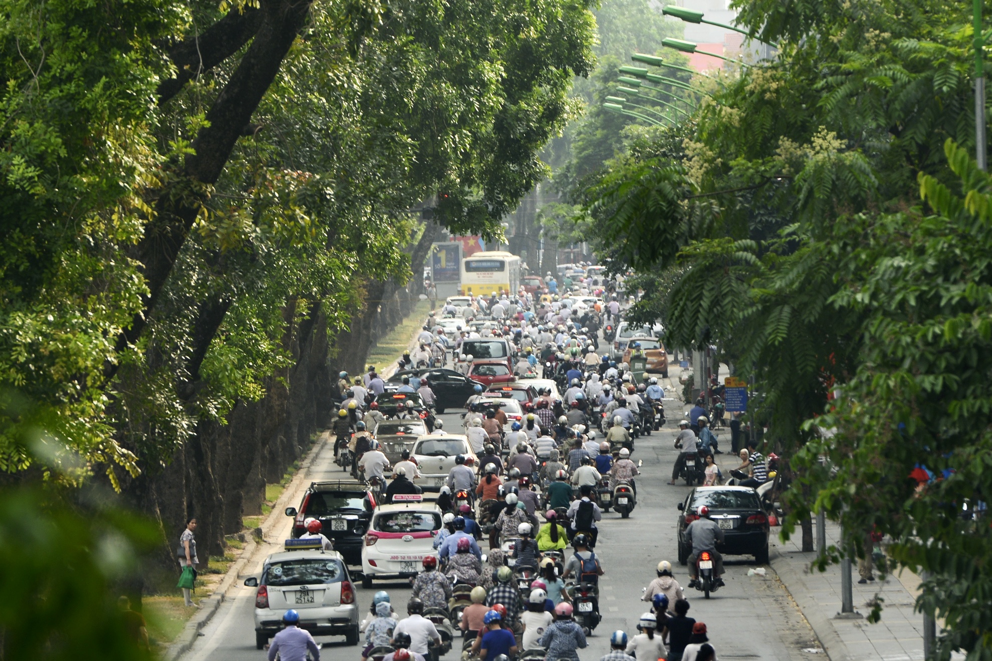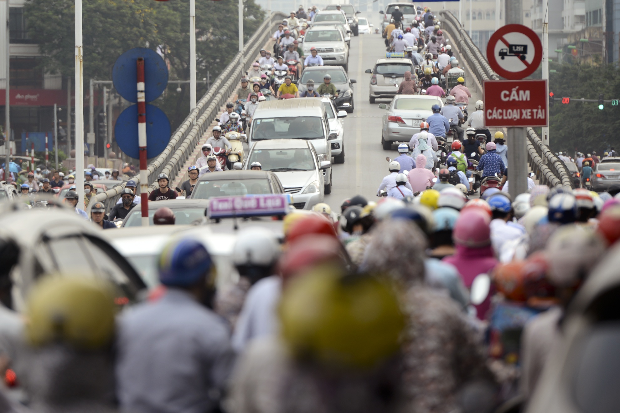Hàng nghìn phương tiện chen lấn nhau không còn một khoảng trống.