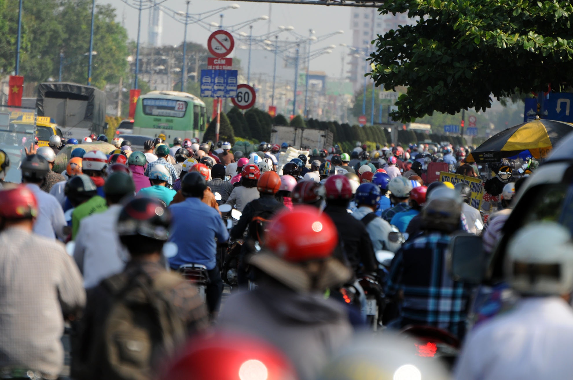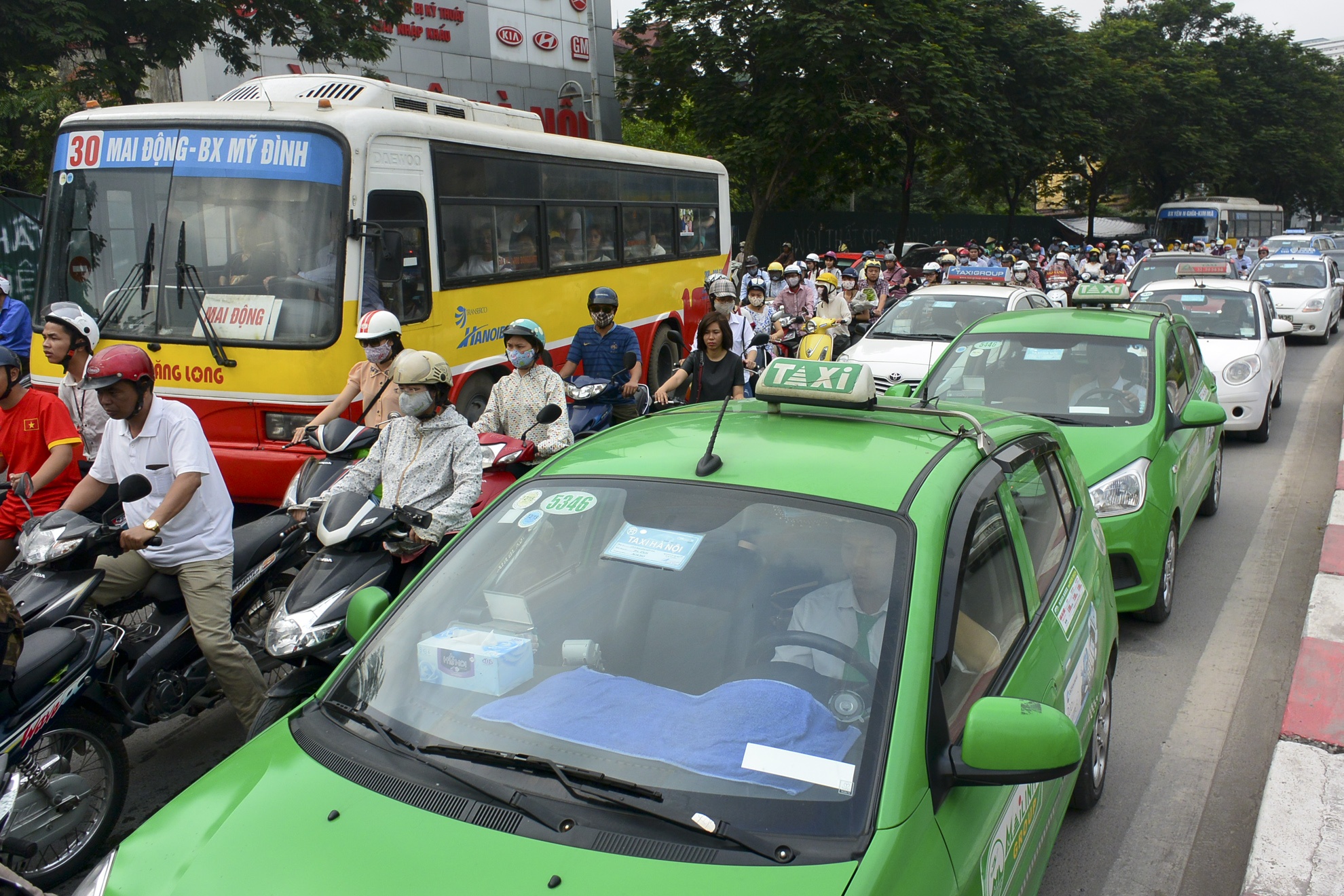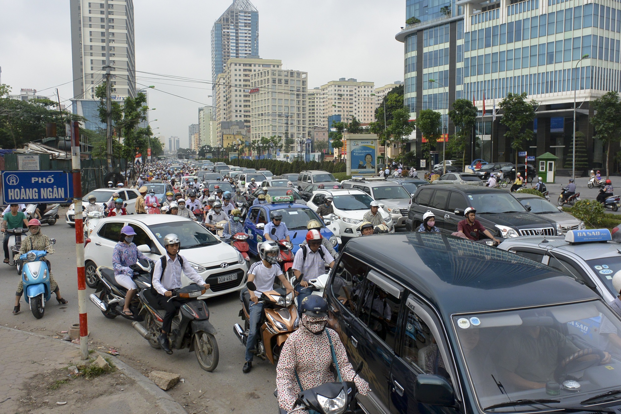 Hàng nghìn phương tiện chen lấn nhau không còn một khoảng trống.