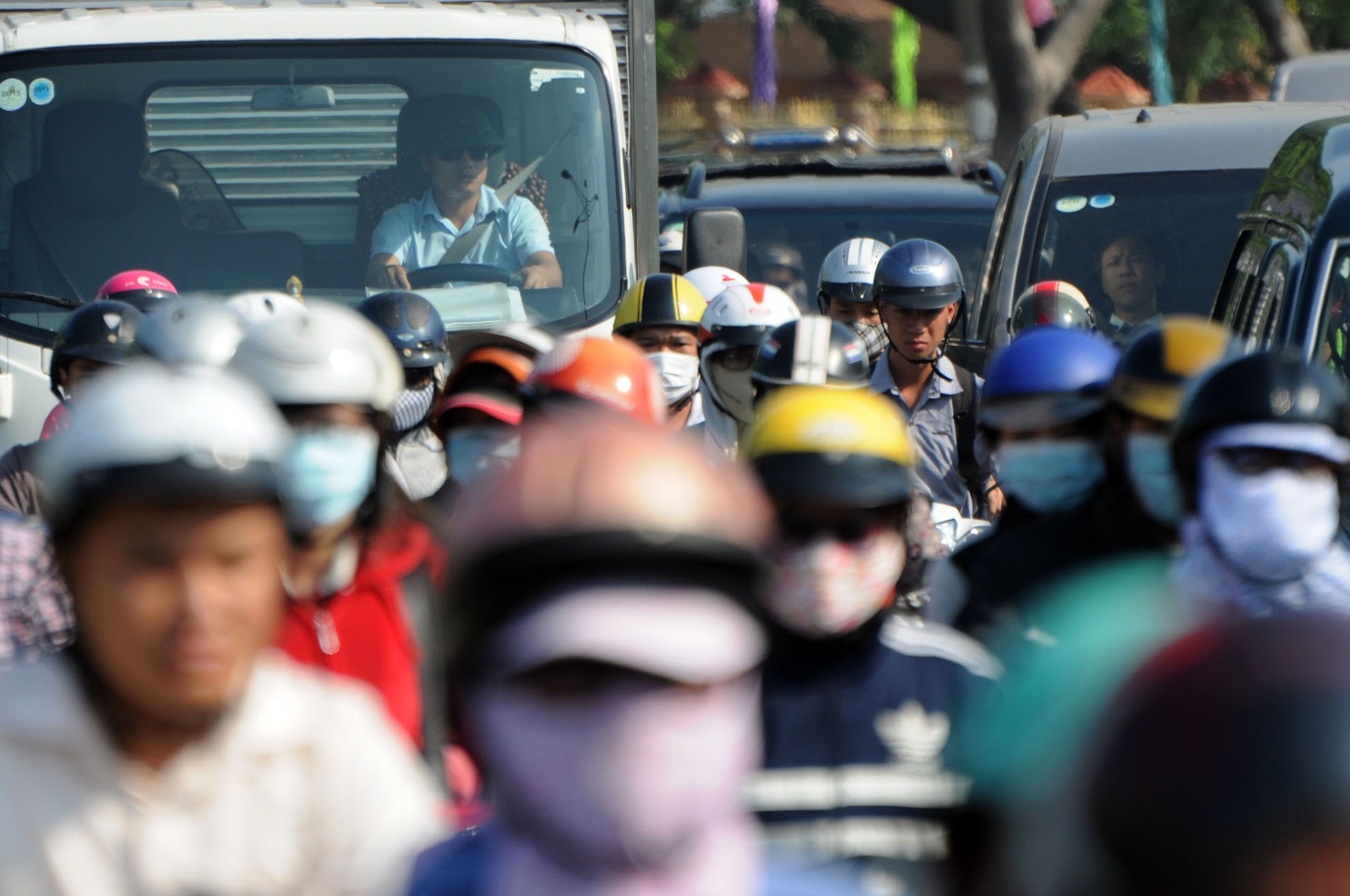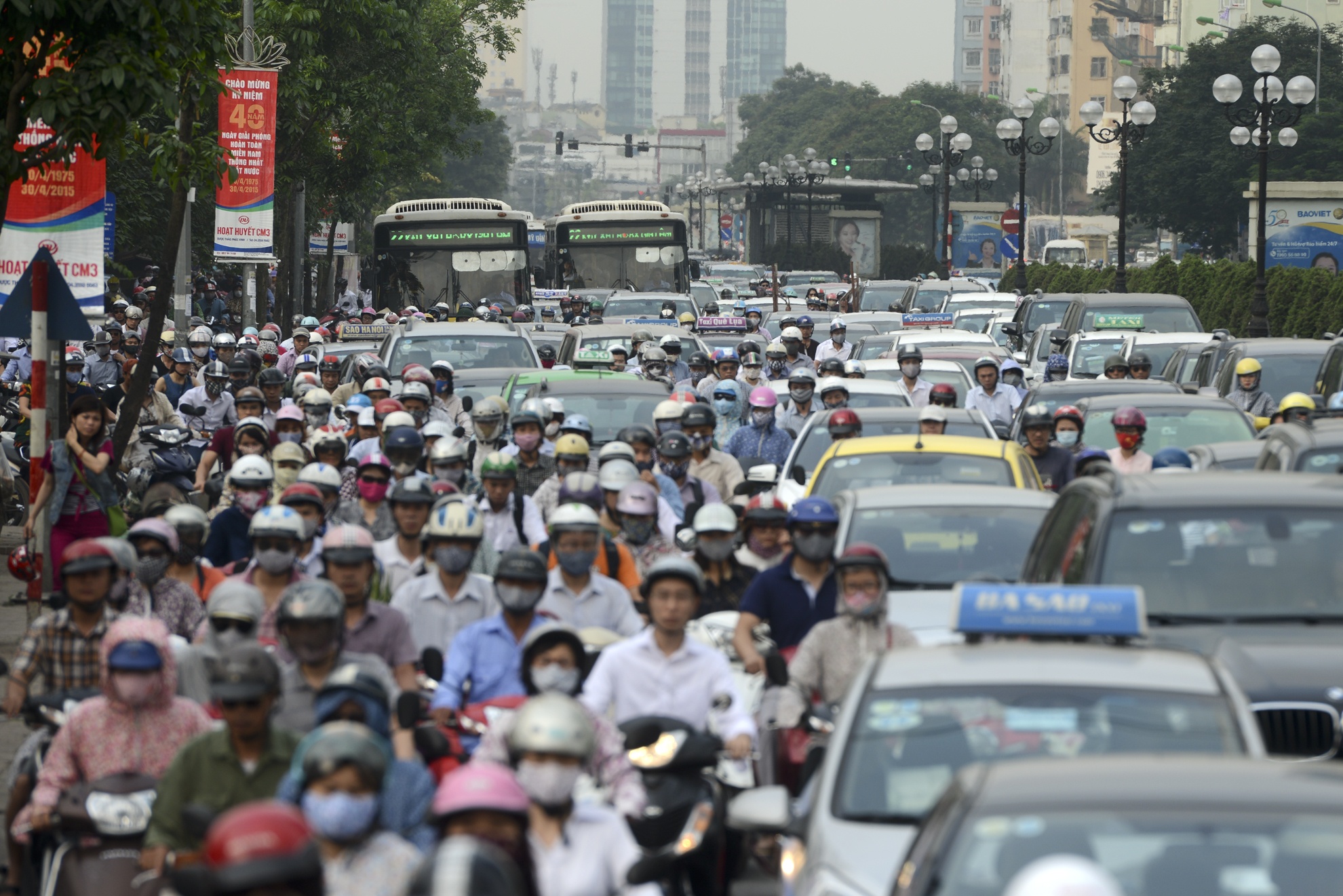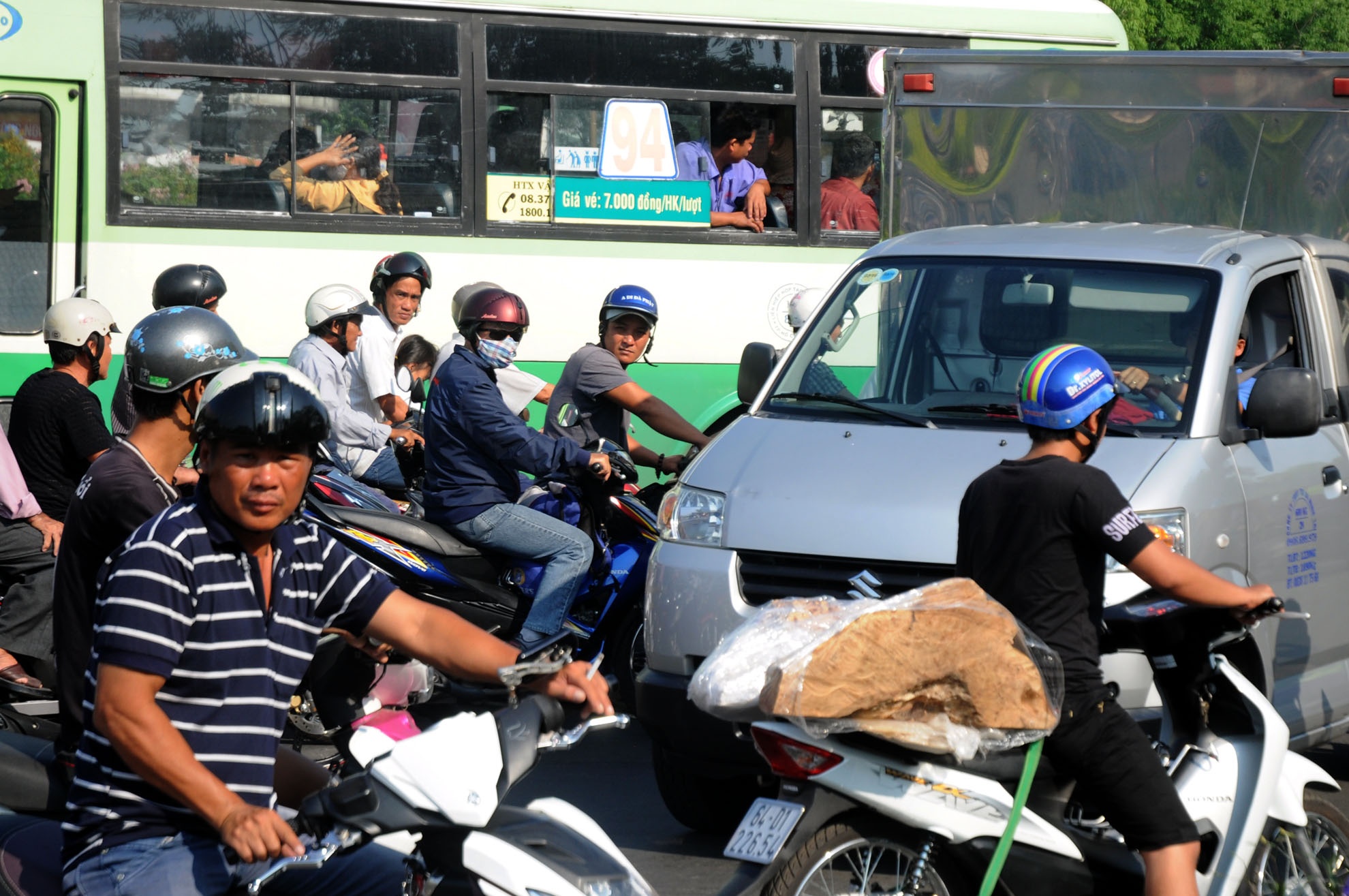 | Tại TP HCM: Sáng 4/5, nhiều người ở ven đô như quận 12, Gò Vấp đi qua đường Trường Chinh vào trung tâm đi làm cũng khiến xe cộ nối đuôi nhau nhích từng chút. |