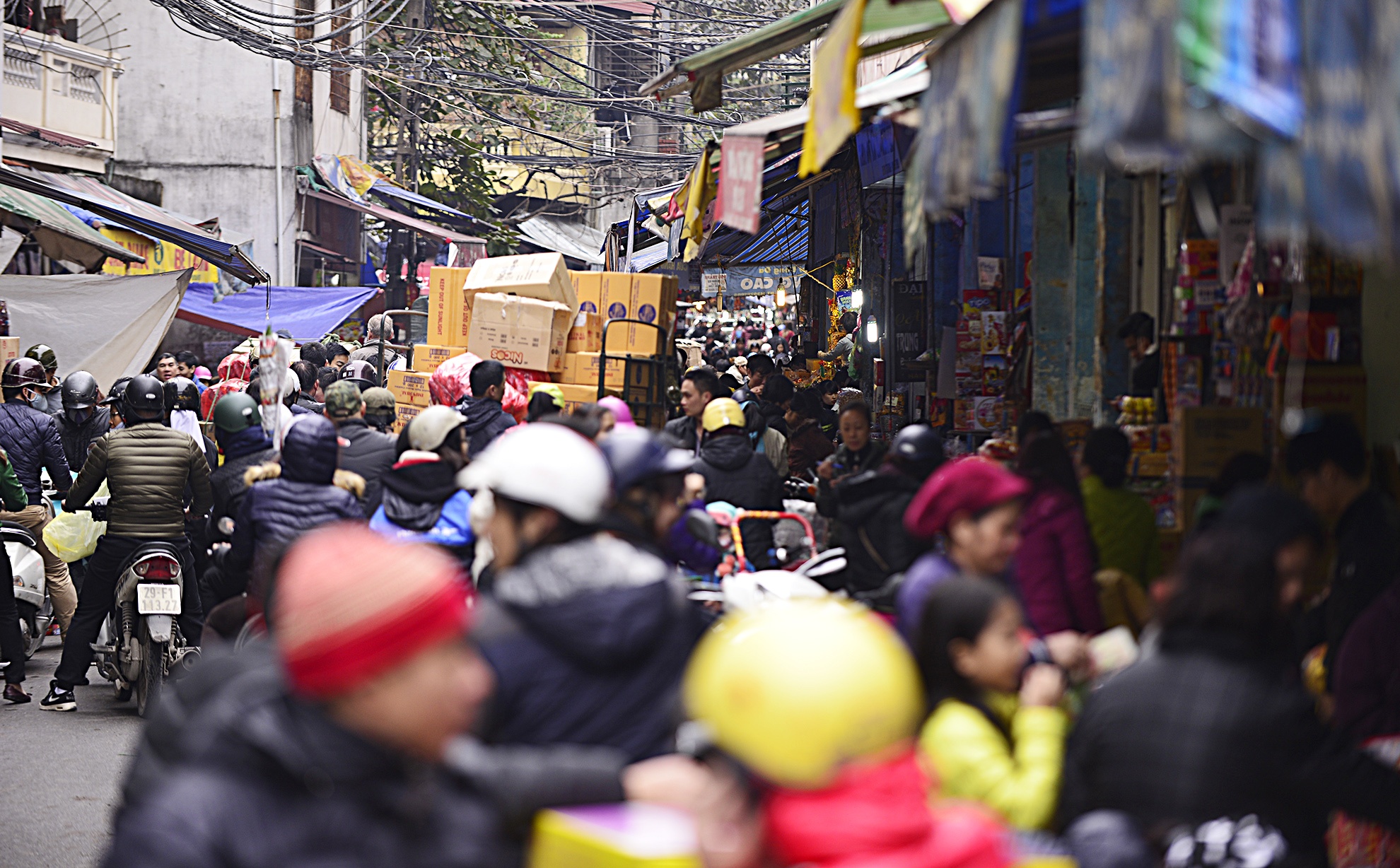 | Phố Hàng Ngang càng giáp Tết càng nhộn nhịp, chen lấn. |