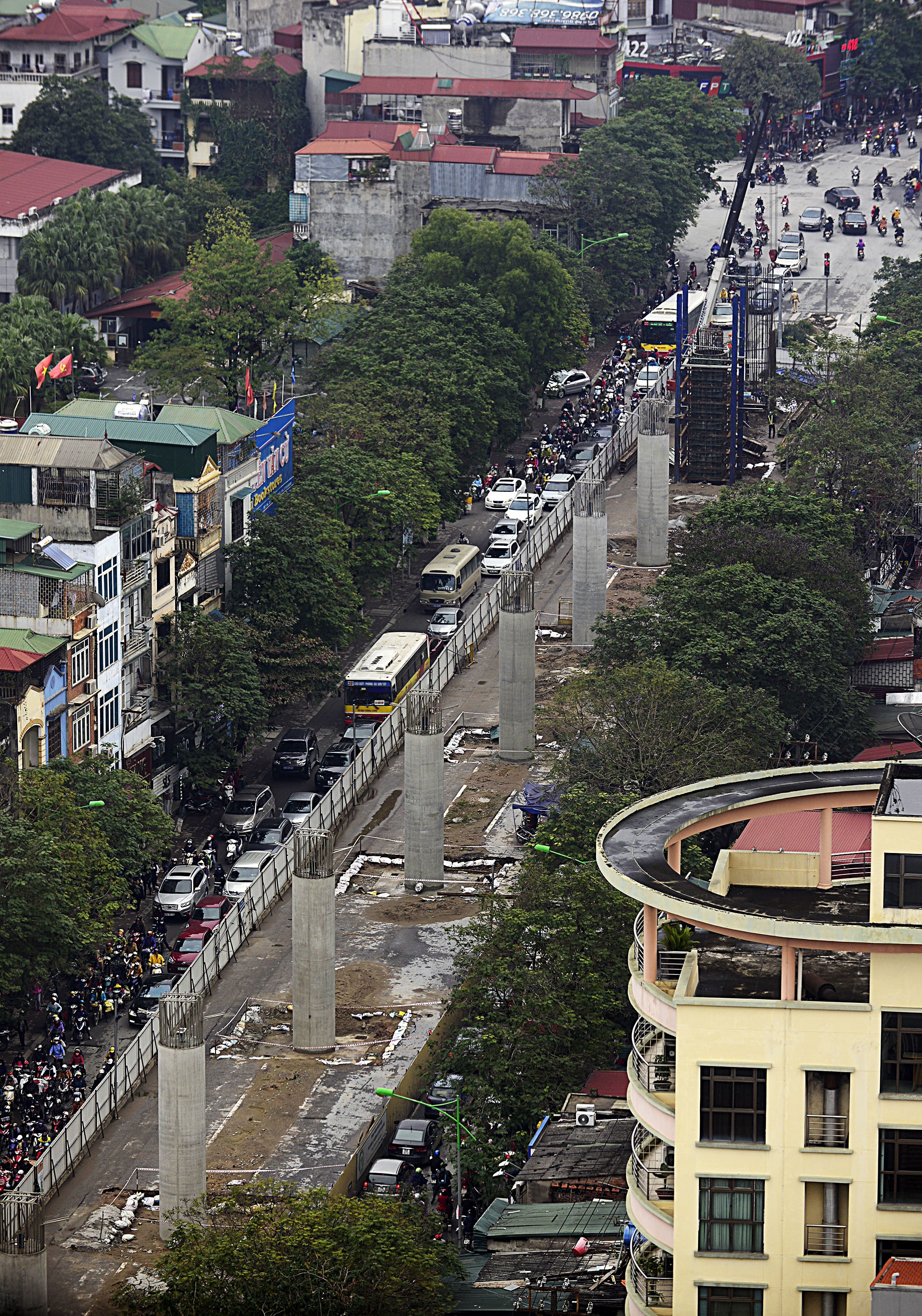 | Một số tuyến đường như Nguyễn Khánh Toàn, Bưởi, Láng, Yên Hòa... bị ùn ứ vào giờ tan tầm. |