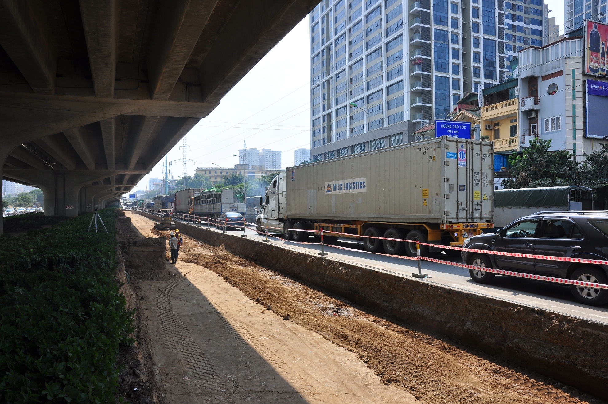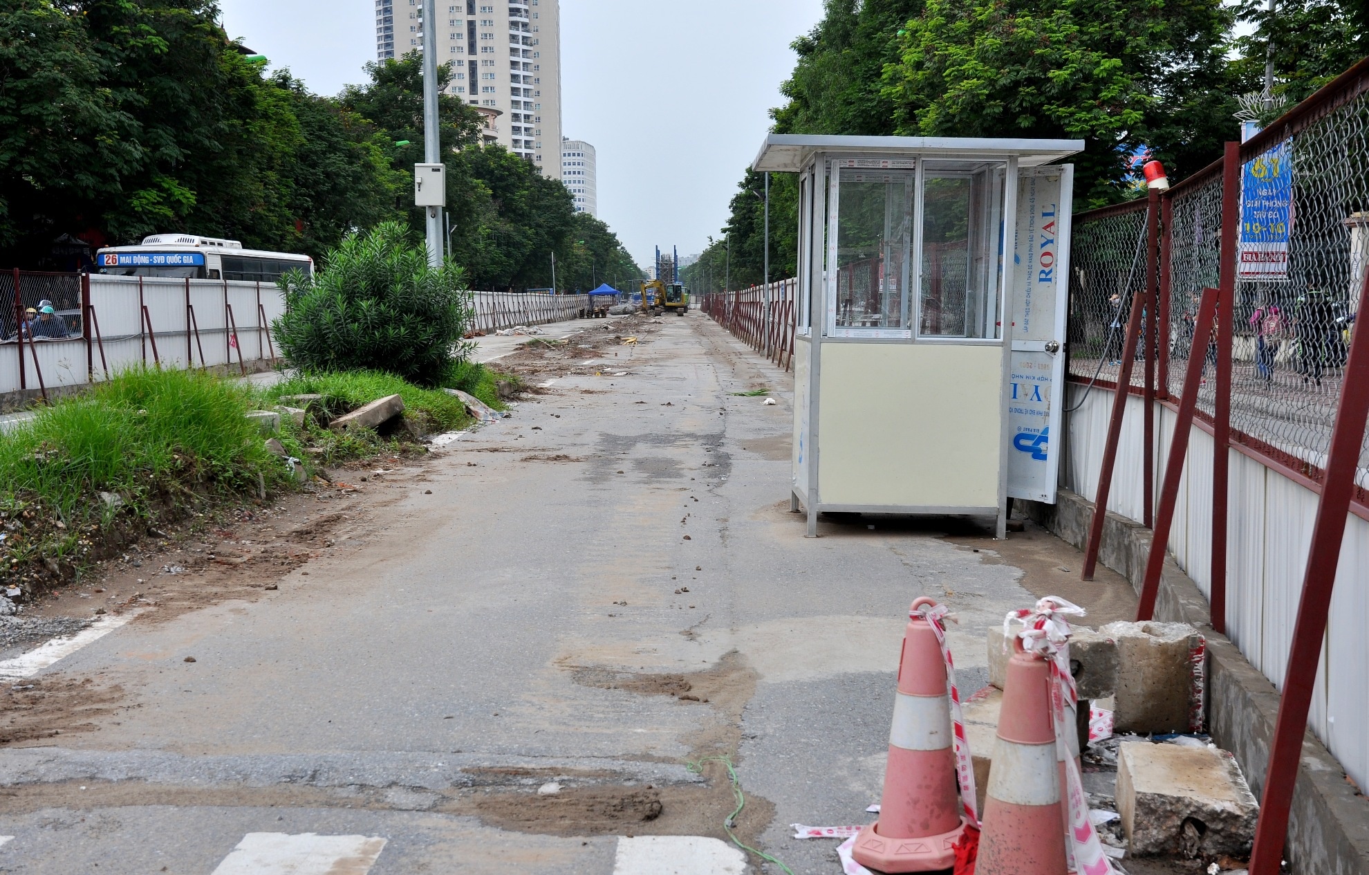 Đoạn rào chắn đầu đường Xuân Thủy (đối diện Đại học Quốc gia) do có bốt điện và mới thi công một số hạng mục nên giữ nguyên.