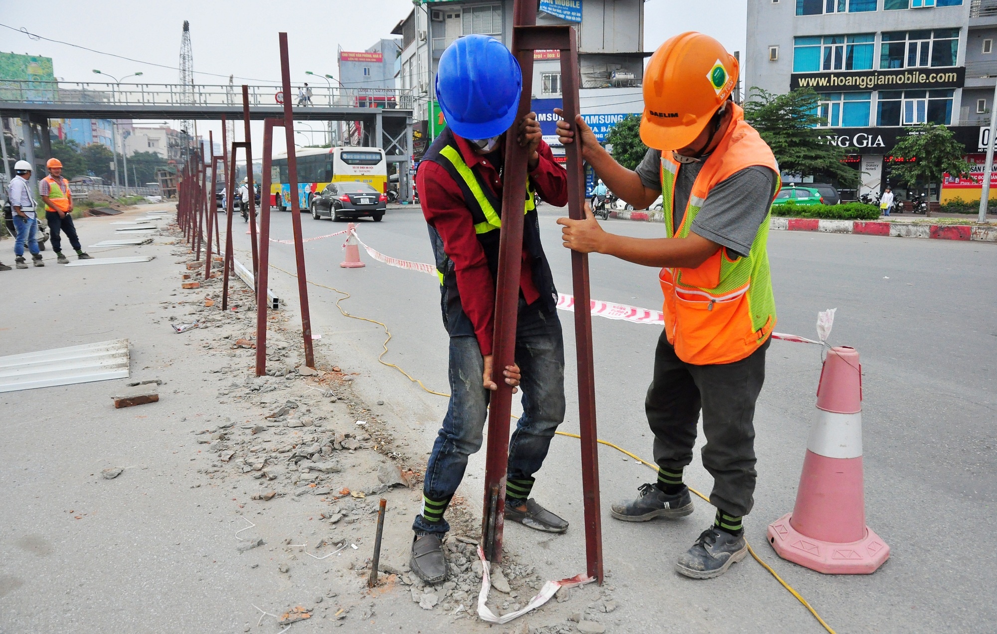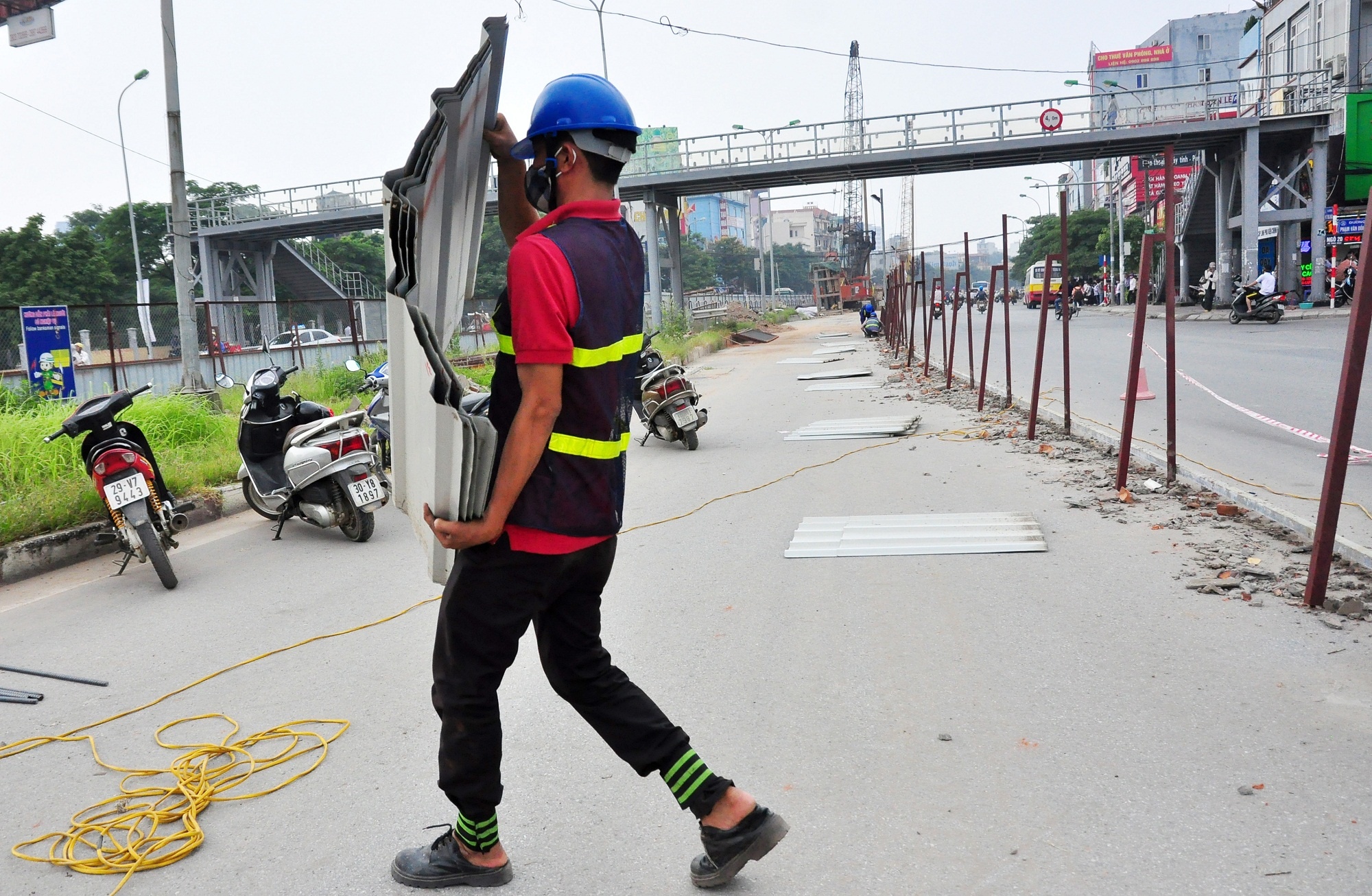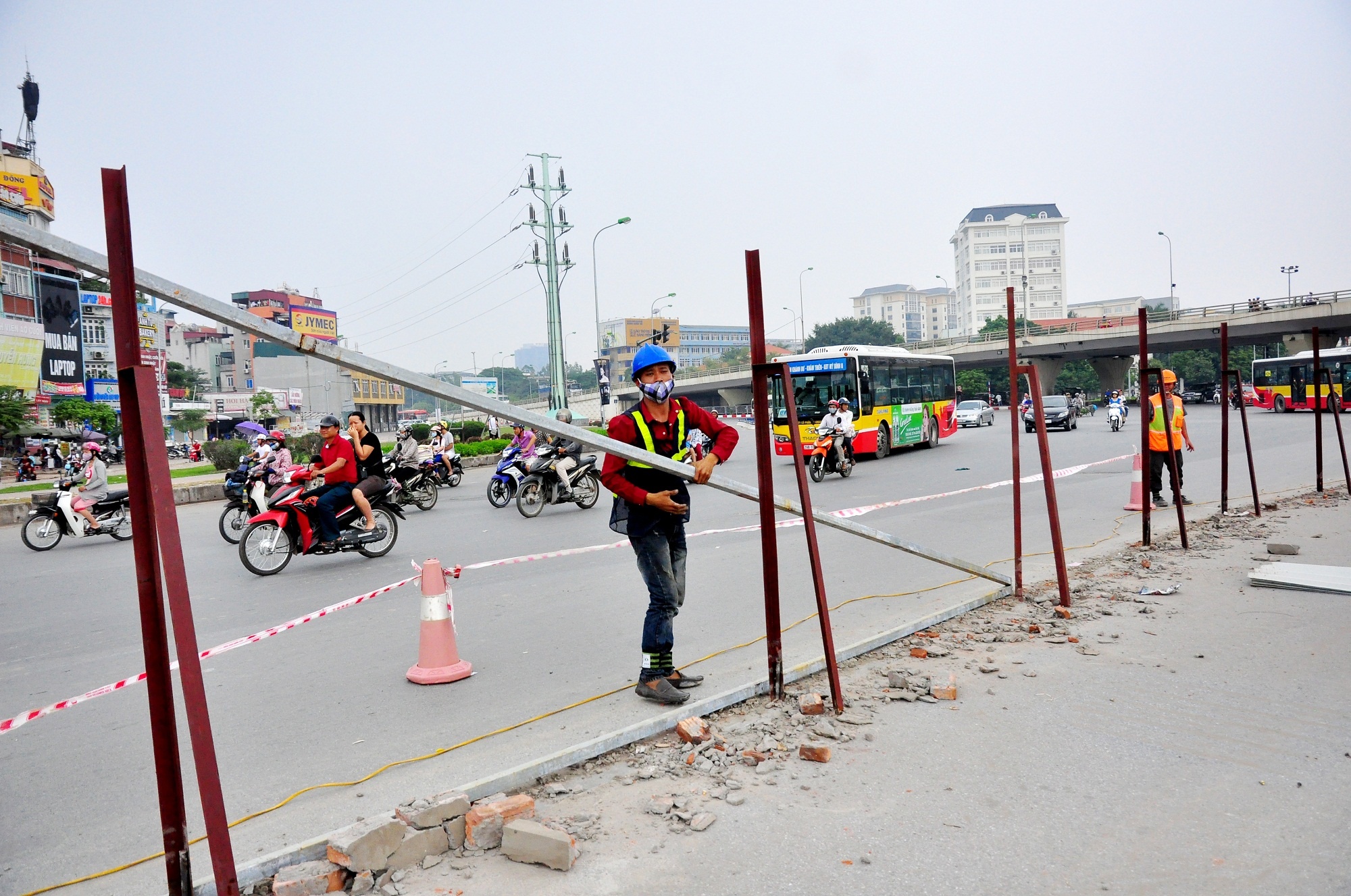 "Công tác tháo dỡ được thực hiện cuốn chiếu. Tại đường Hồ Tùng Mậu, 50 m rào chắn phải tháo dỡ hoàn toàn. Còn rào chắn tại đường Xuân Thủy được thu dọn lùi 1 m để mở rộng lòng đường cho phương tiện lưu thông", kỹ sư này nói.