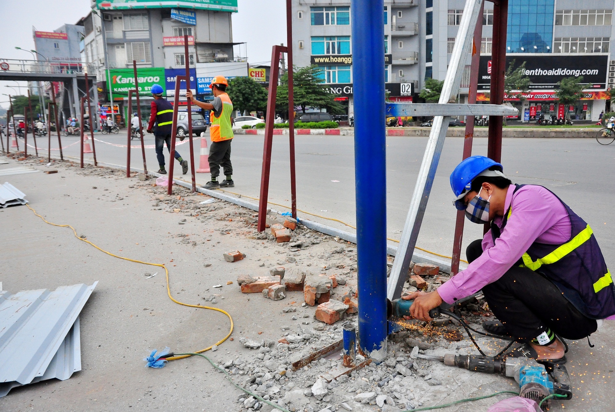 Sáng 25/10, BQL Dự án Đường sắt đô thị tuyến Nhổn – ga Hà Nội bắt đầu tháo dỡ "lô cốt" đầu tiên gây ùn tắc trên đường Hồ Tùng Mậu (Cầu Giấy - Hà Nội).